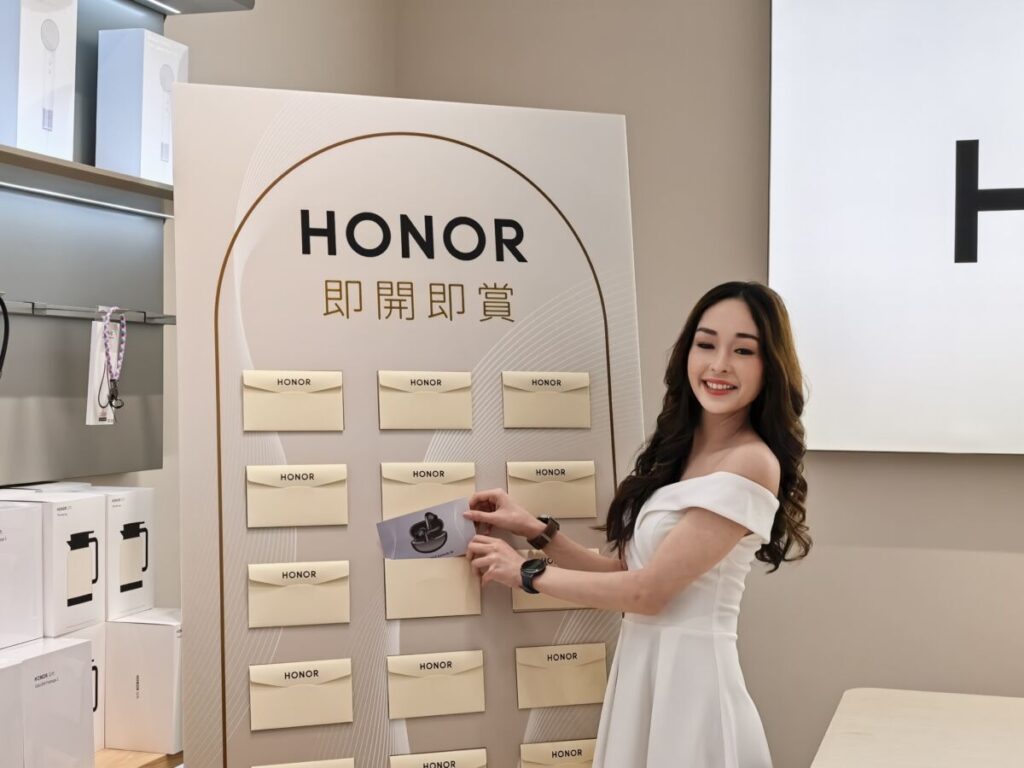 除了屯門新店的特定優惠,HONOR 亦於全港所有體驗店同步展開「開幕多重賞」。由即日起至 1 月 31 日,消費者凡購買任何手機、平板或電腦,即可參加「即開即賞」活動,隨機獲得包括 HONOR 黑色菱格背包、CHOICE Earbuds 藍牙耳機、Scale 3 體脂磅或手機支架等實用配件。同時,購買任何產品的顧客亦可以優惠價加購指定配件,例如原價 HKD799 的 CHOICE 頭戴式耳機 Pro 僅需 HKD199 即可入手,而多款不同容量的 JOWAY 行動電源加購價亦低至 HKD59 起。