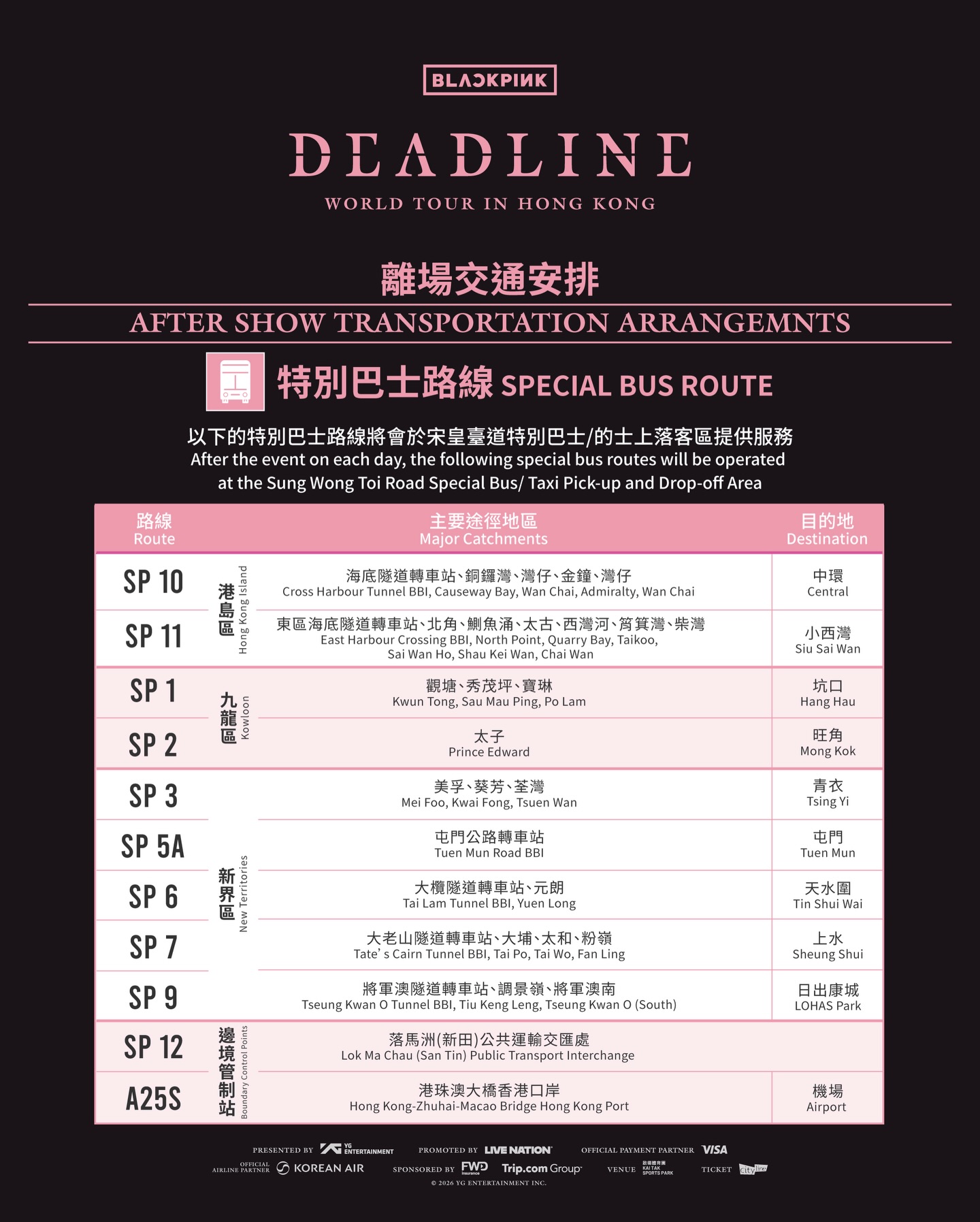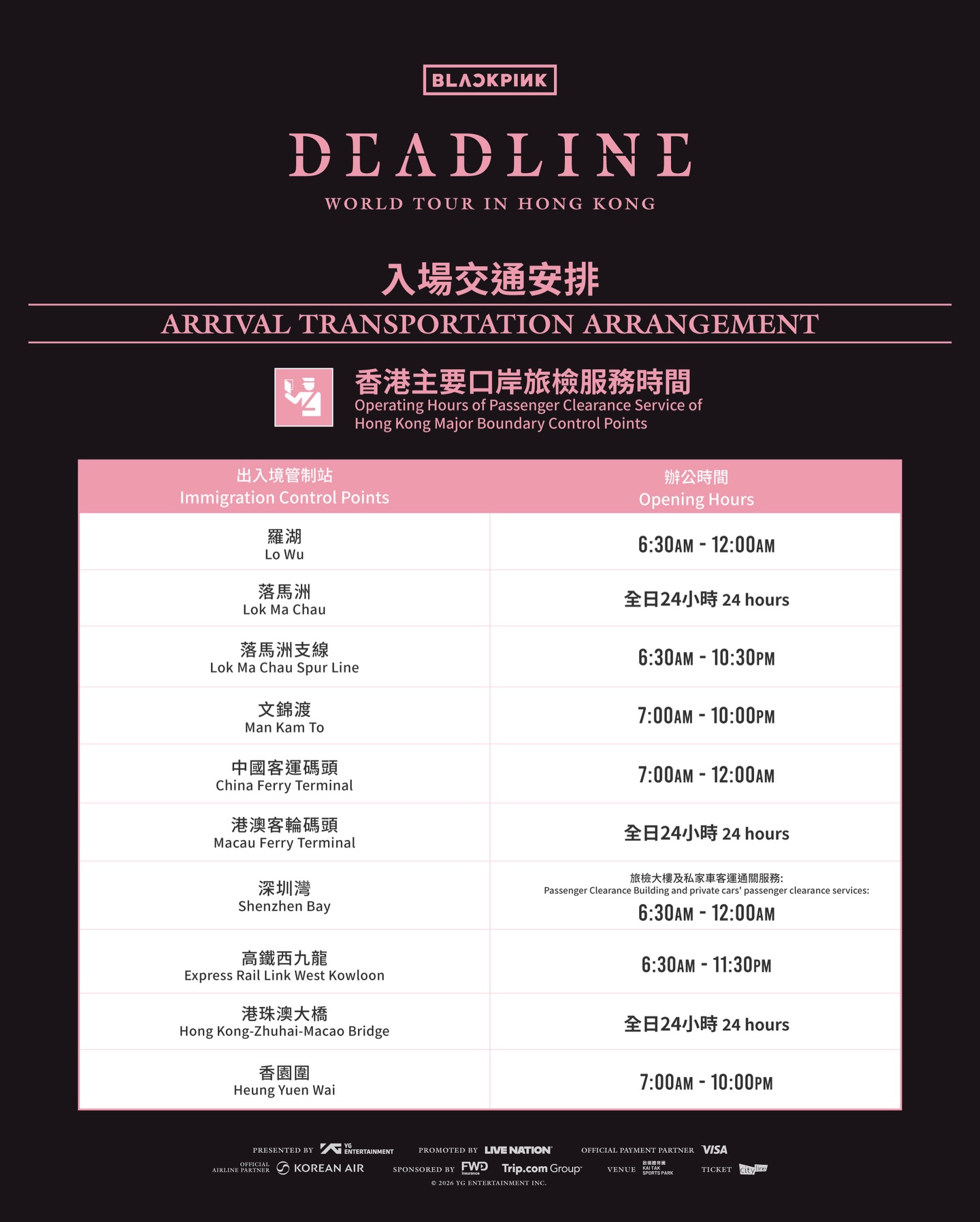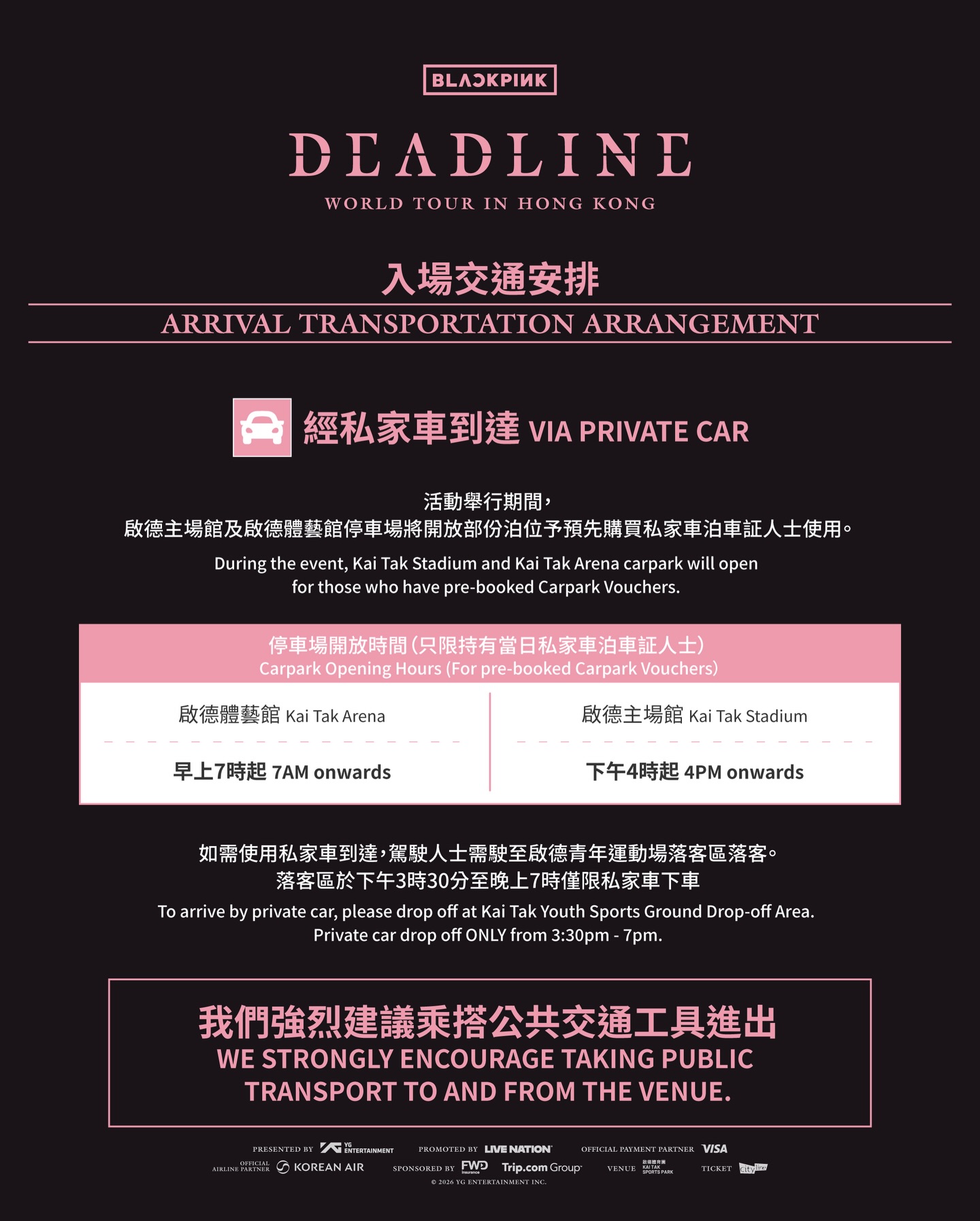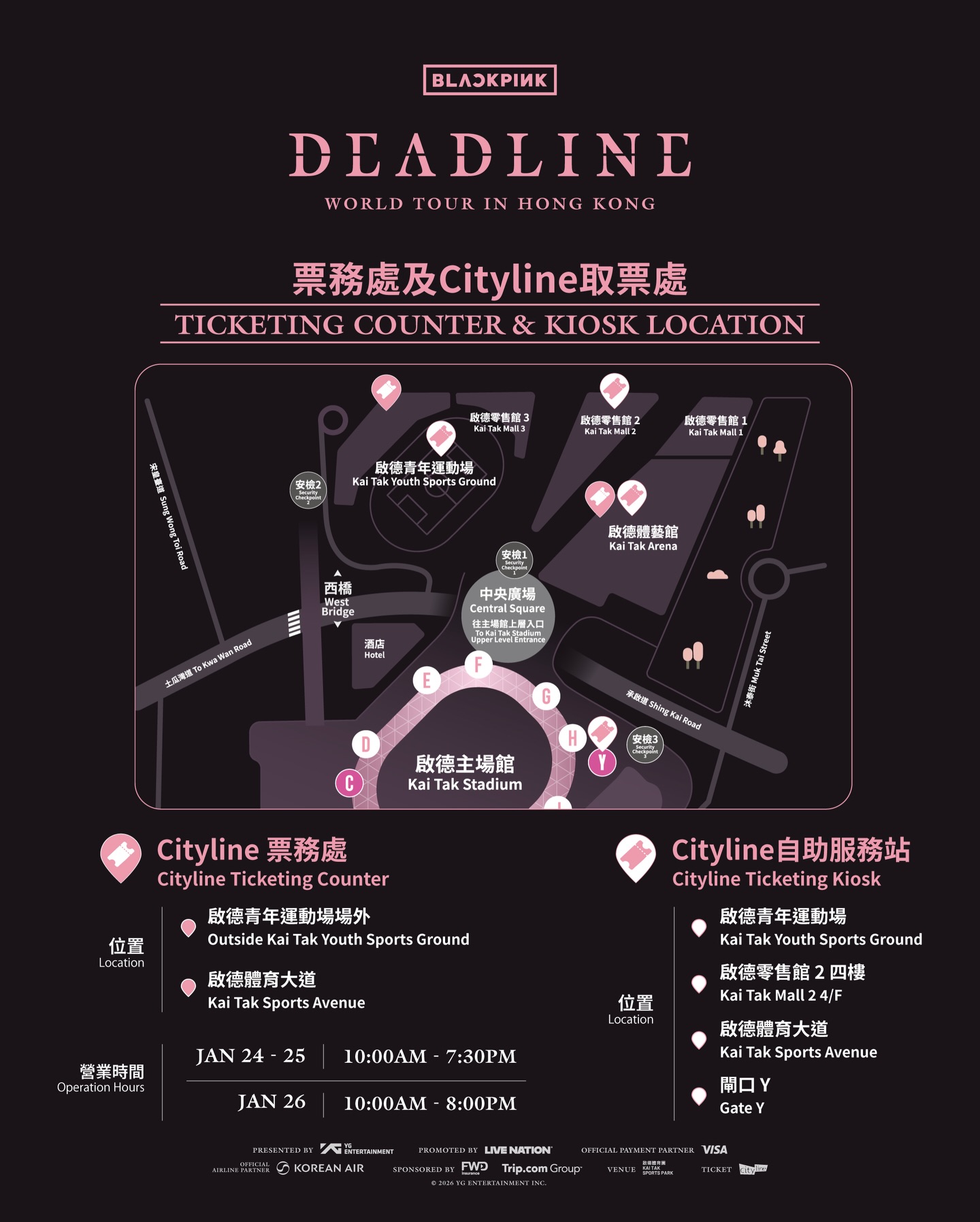 【Now.com】韓國天團BLACKPINK世界巡迴演唱會「DEADLINE」香港站,將於1月24日至26日在啟德體育園主場館舉行,亦是BLACKPINK巡演的最終站。隨著演唱會進入最後倒數,Now.com為各位BLINK(BLACKPINK粉絲暱稱)整合入場安排、交通攻略、打卡位及周邊商品情報等,讓BLINK全心投入這場期待已久的音樂盛宴!