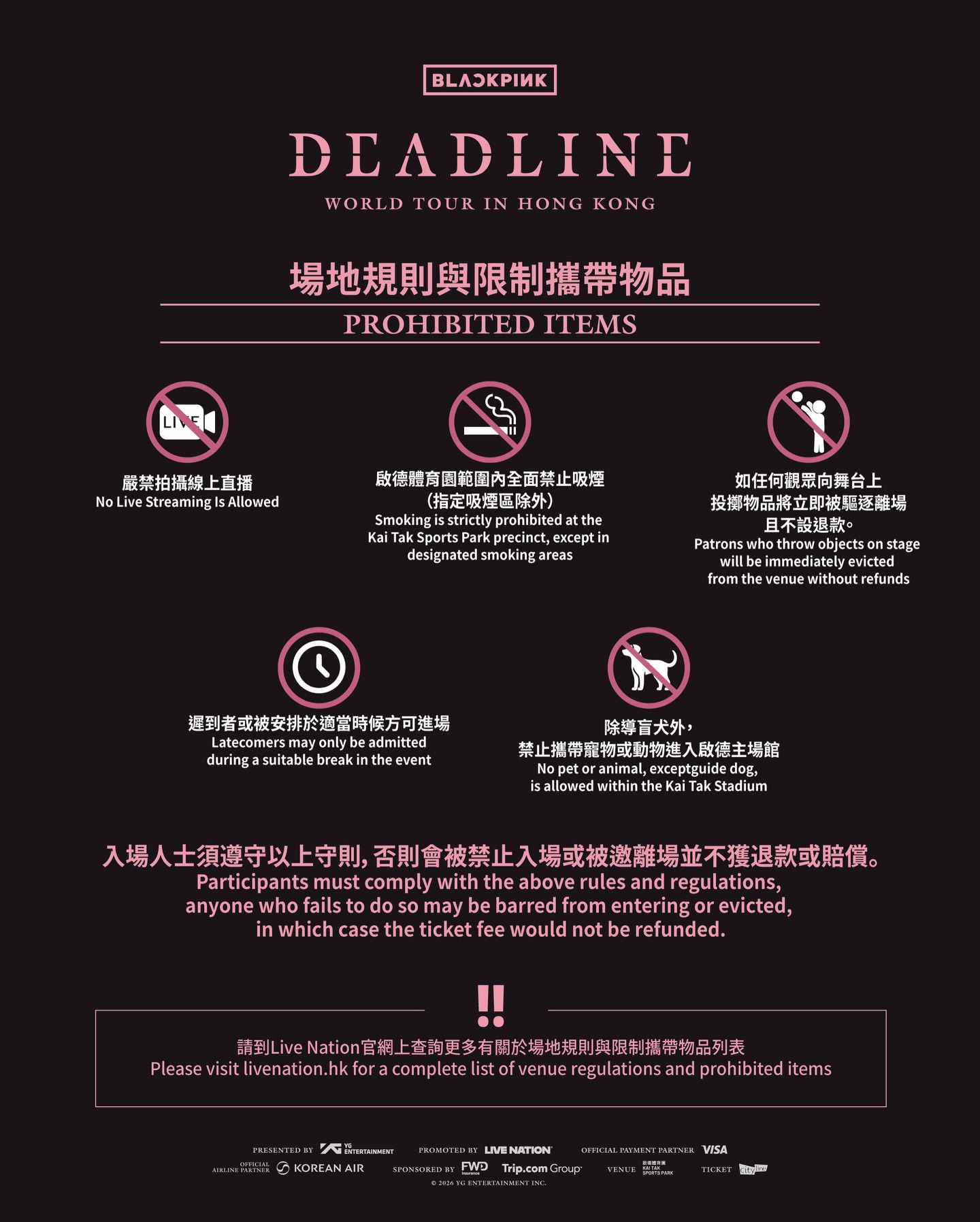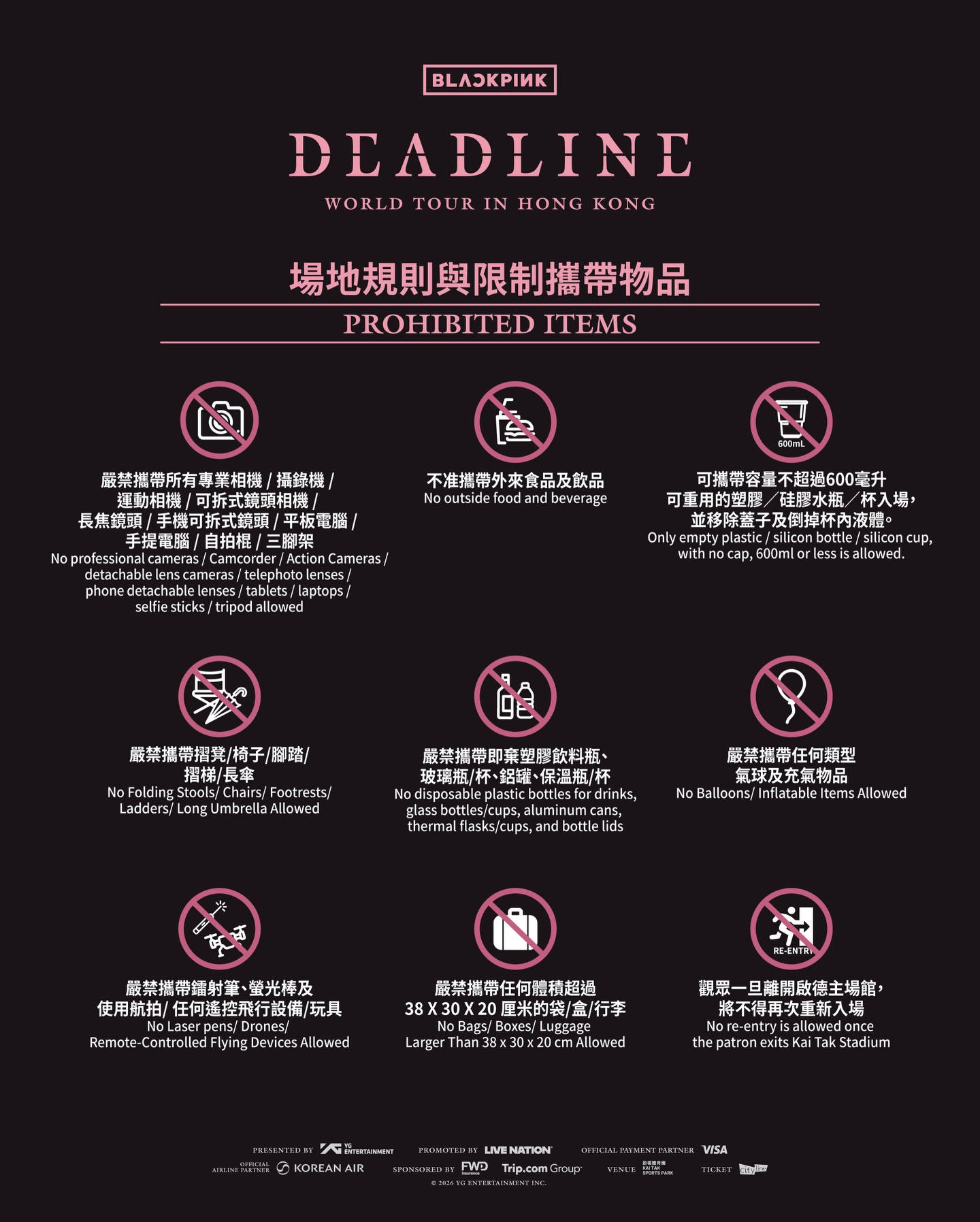 BLACKPINK香港演唱會丨場地規則與限制攜帶物品