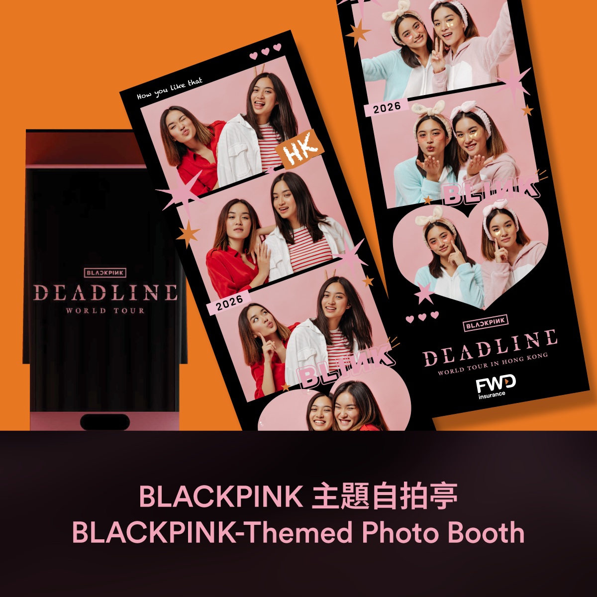 1. FWD保險於啟德體育園東營設活動專區,持當日門票可到打卡場景拍照。成為FWD MAX會員更可體驗BLACKPINK主題自拍亭及換領應援小物(粉紅紙扇或心形濾鏡眼鏡)。