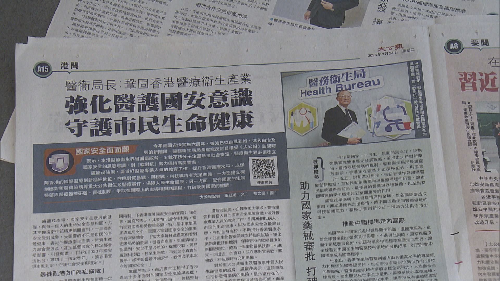 盧寵茂在訪問提及,過去少數不法分子曾以醫療專業作籍口,企圖影響香港安定,從2014年的佔中等事件,如同「癌症的延續和擴散」危害國家安全,又舉例指2022年一名女嬰需要心臟移植,最終在國家支持下完成首次跨境器官捐贈,但就有人藉此造謠,影響器官捐贈數字,認為醫務衞生界必須對「軟對抗」高度警惕;又提到本港將積極與國家十五五規劃做好對接,推動創新藥物與醫療器械的研發及審批機制改革,目標今年逐步落實推展藥物及醫療機械監督管理中心的第一層審批。