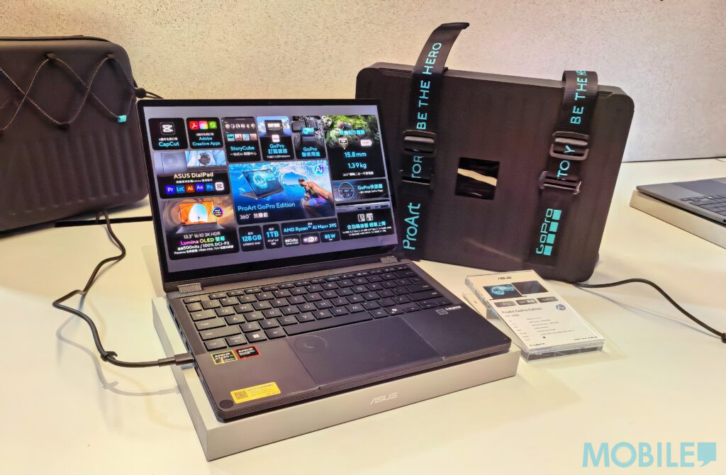 除了 Zenbook 系列,華碩同步推出了 ProArt GoPro Edition。這款專為影音創作者設計的產品,不僅在機身設計上融入 GoPro 元素,更內建 StoryCube 應用程式以優化影片剪輯流程。硬體方面具備 AMD Ryzen AI Max+ 處理器與 NVIDIA GeForce RTX 5090 顯示卡的強悍配置,配合 360° 翻轉螢幕,全面滿足戶外拍攝後即時剪輯的高效需求。