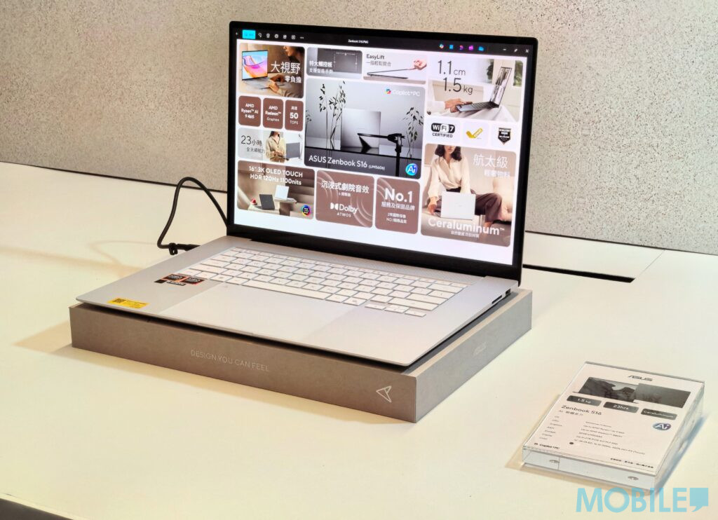 針對不同流動辦公需求的用戶,Zenbook S 系列將機身厚度壓縮至 1.1cm。其中 Zenbook S14 配備 Intel 新一代處理器,續航力可高達 27 小時;而 16 吋的 Zenbook S16 則採用 AMD Ryzen AI 9 處理器,為大螢幕愛好者提供更長效的運算保障。