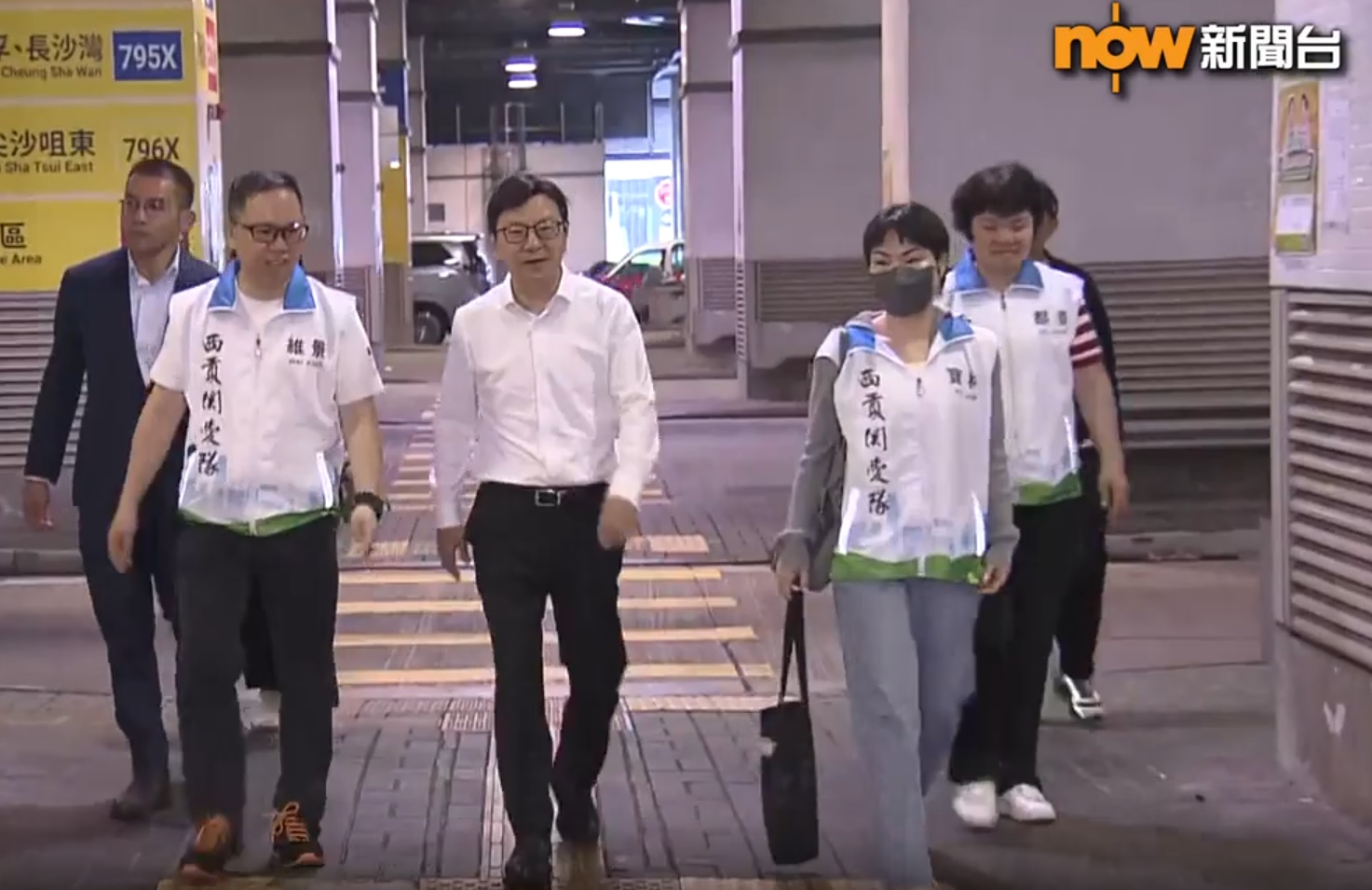 勞工及福利局局長孫玉菡到調景嶺巴士總站視察及派傳單。