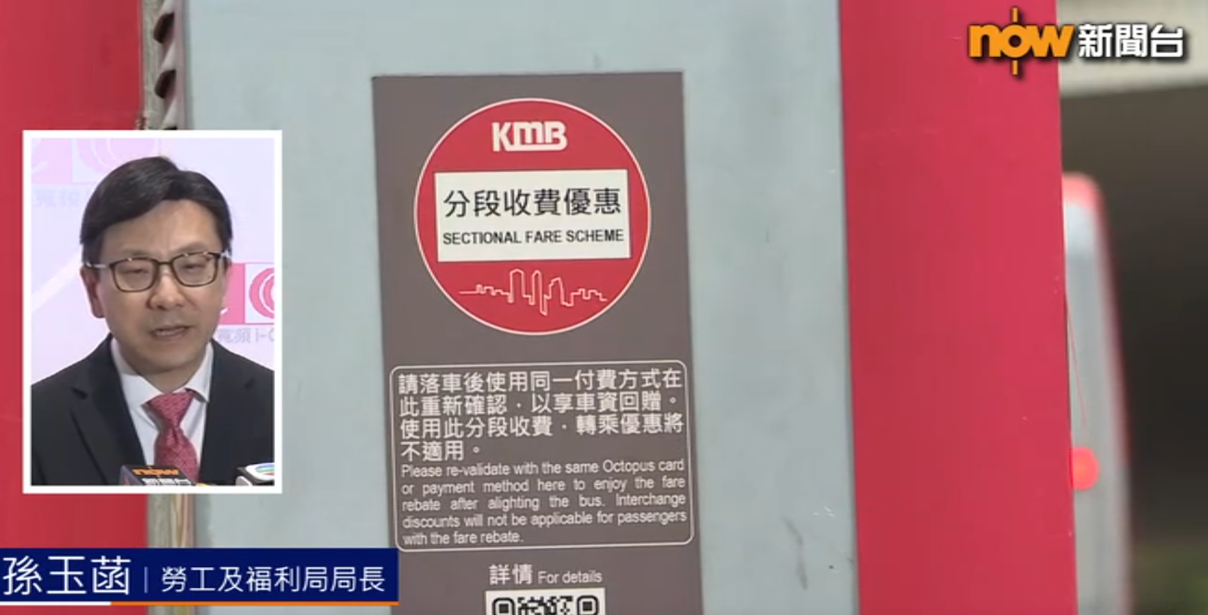 「兩蚊兩折」實施首日有分段拍卡機故障。勞工及福利局局長孫玉菡稱,九巴的拍卡機已恢復正常,運輸署亦進行了測試。