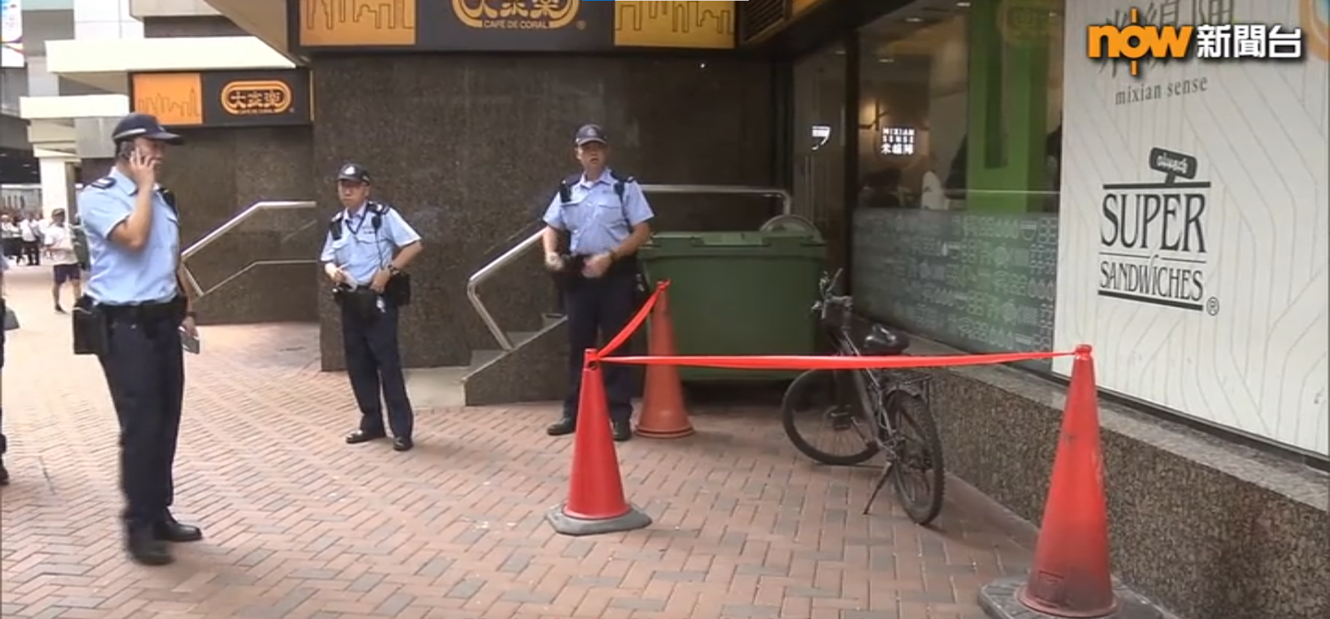 警方指,有人劫走銀行約3.6萬元後踏單車往金鐘方向逃走,懷疑涉案的男子最終在柴灣環翠商場落網,下午3時許被黑布蒙頭帶上警車。警方亦在金鐘海富中心外,發現相信是疑犯逃走時用的單車。