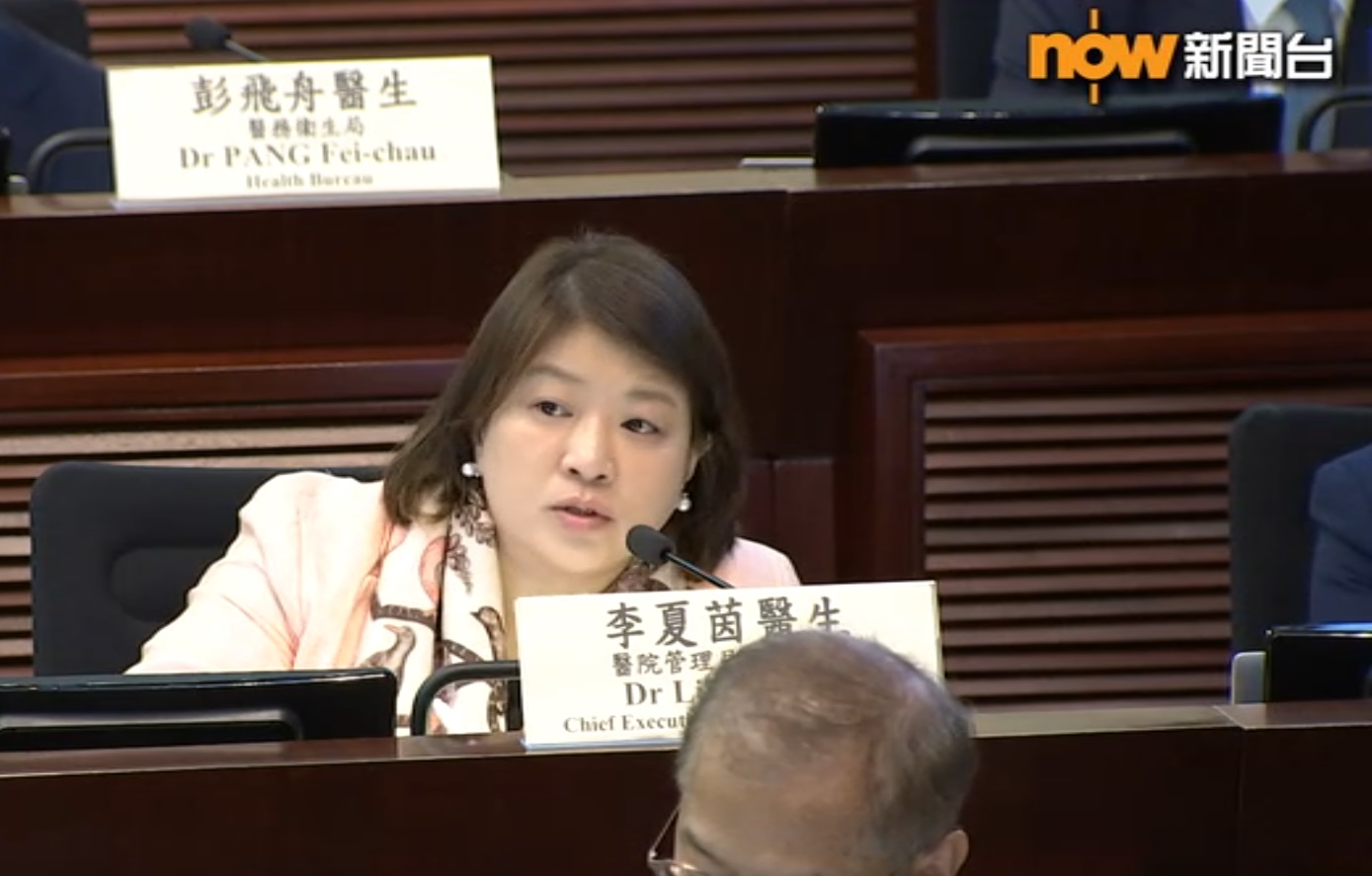 醫管局行政總裁李夏茵:「我們著實見到譬如個別藥物,止痕膏、止痛膏,在短短三個月內已減少兩成,亦見到病理學測試、基礎病理學是沒有收費,個別病理學檢視(使用)亦下跌一成。相信希望用多點時間檢視成效如何,而暫時見到無論急症室或住院服務(使用)分別不是很大。除了急症室非急症個案真的減很多,住院有減少但不大。」
