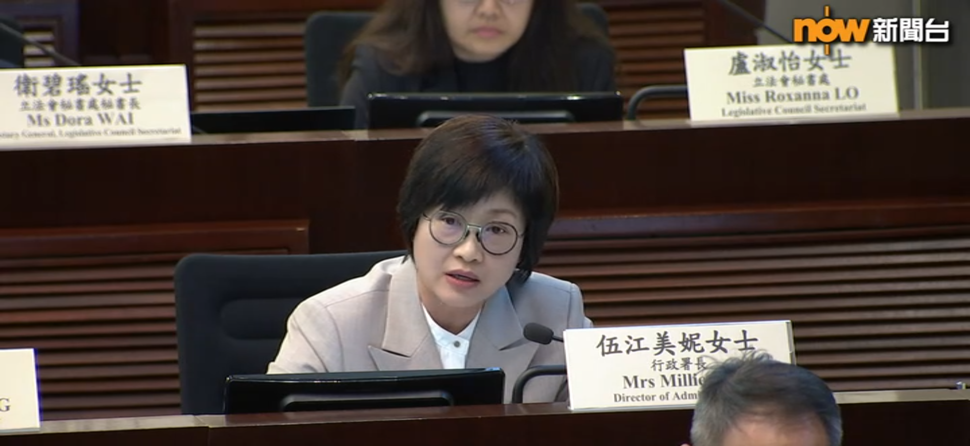 伍江美妮:「每位前任行政長官離任後,仍為香港做非常重要的工作,憑藉著他們在最高層的國際、內地的人脈聯繫,特別是最高層的政要聯繫、政商界聯繫等,繼續為香港說好香港故事。幫這些前任行政長官做這些推廣和禮節性工作,這是我們應該做的亦是有需要做,我們無計劃削減這方面的支援。」