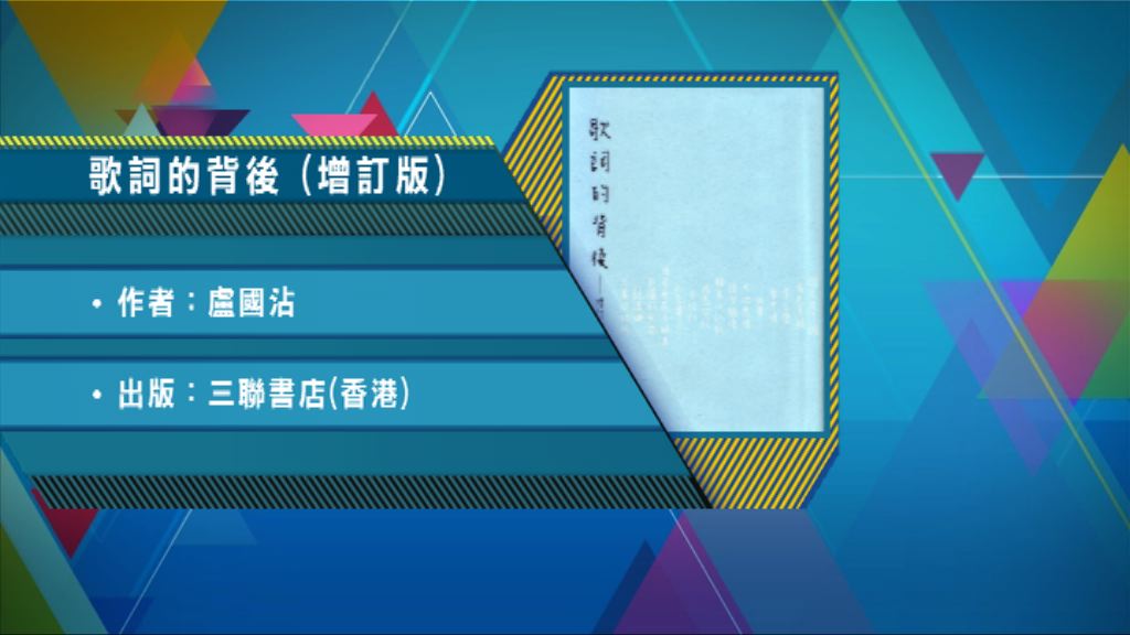 【now新聞台】《歌詞的背後》一書,是樂壇詞聖盧國沾的創作談,談及作品達100首。盧國沾活躍於70、80年代香港樂壇,填詞作品逾3000首,包括不少膾炙人口作品,如緣份、變色龍、小李飛刀及戲劇人生。