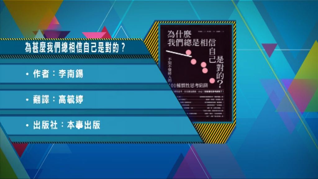 【Now新聞台】《為甚麼我們總是相信自己是對的?》由李南錫撰寫。李南錫是南韓心理學家,現職韓國認知科學會幹事、大學心理學講師。