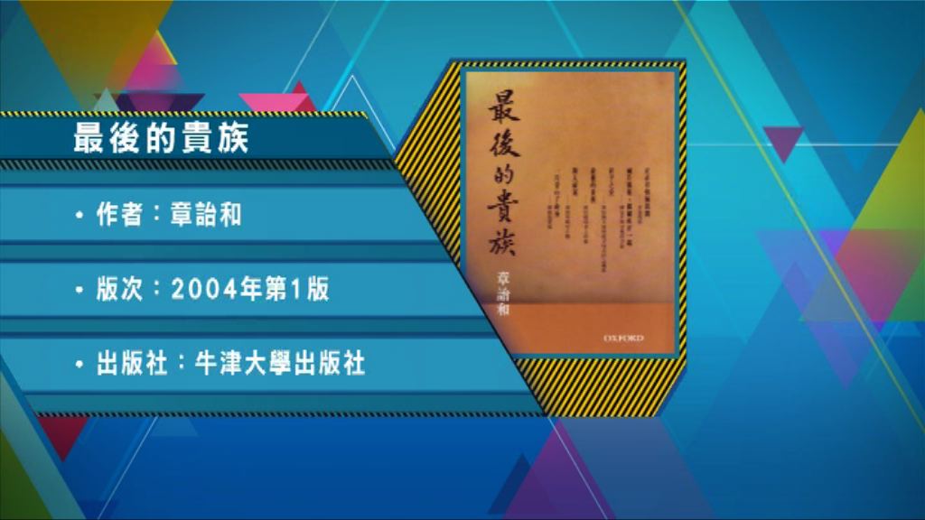 【Now新聞台】《最後的貴族》由章詒和撰寫。章詒和是中國民主派領袖章伯鈞的女兒,現居北京,是戲曲研究員和退休作家,著有《伶人往事》等多部暢銷作品。