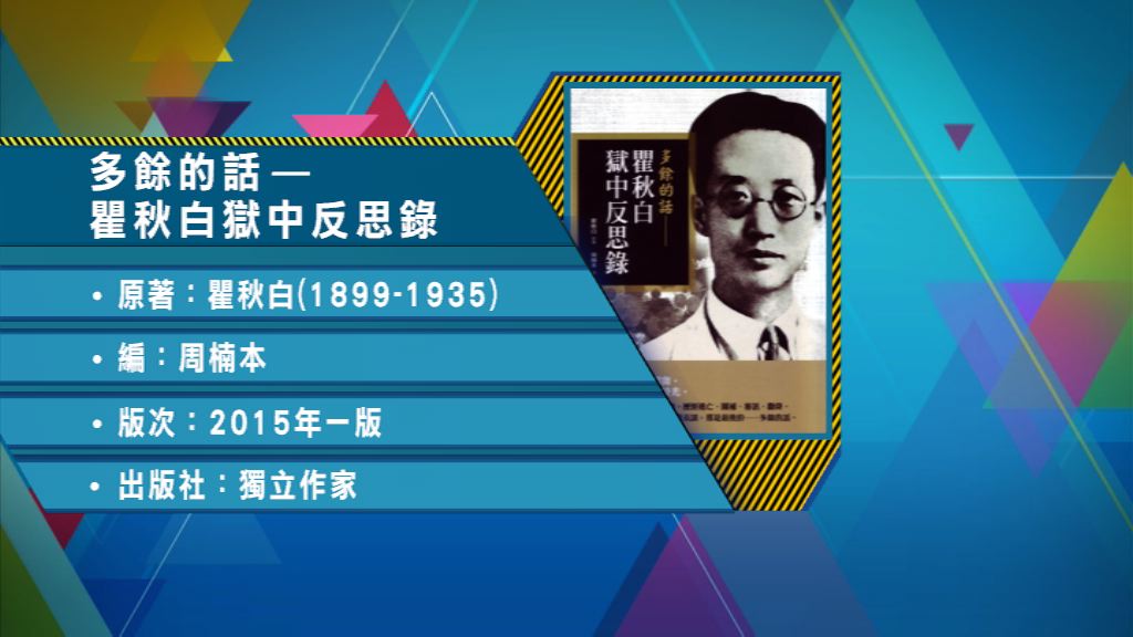 【Now新聞台】《多餘的話—瞿秋白獄中反思錄》由周楠本編,原著由瞿秋白撰寫。周楠本是魯迅專家,擔任北京魯迅博物館研究館員、中國魯迅研究學會理事,近年專注中國近代史研究。而原著瞿秋白,是散文作家、中國共產黨創黨初期領導人。