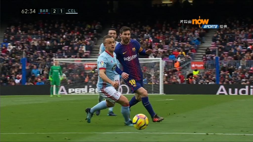 【Now新聞台】西班牙甲組足球聯賽,榜首的巴塞羅那及皇家馬德里齊齊失分,其中巴塞在主場被切爾達逼和2比2。