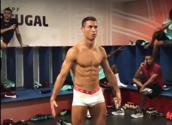 葡軍陣中,又怎能少得基斯坦奴朗拿度(Cristiano Ronaldo)呢?這位隊長理所當然成為這段長達1分鐘短片的中心,再次脫剩內褲下「激凸」,露出那健碩的腹肌,以其招牌的擘脾慶祝動作,站在更衣室的中間一動也不動,就像蠟像一樣。至於拿尼、安達高美斯、連拿度辛捷士及威廉卡維奴等隊友,甚至教練組人員,則坐或站在其四周,頓時變成陪襯。