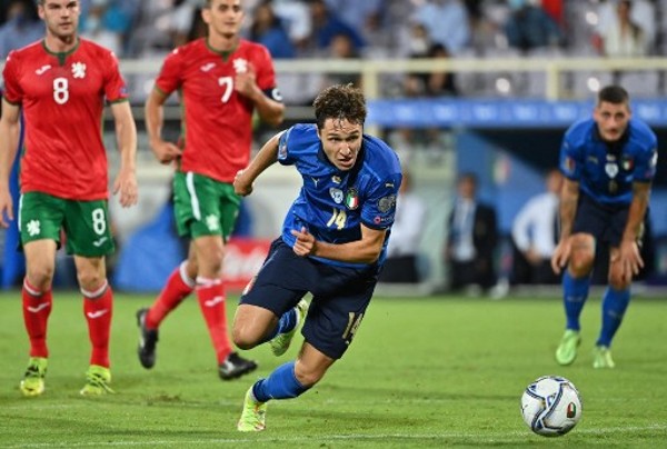 位於歐洲區世盃外C組的意大利,此前3戰全勝,包括曾作客以2:0戰勝今戰對手保加利亞。這次回到主場再交鋒,意軍也順利在16分鐘先開紀錄,費達歷高基艾沙(Federico Chiesa)從右路引球推進入中間,在禁區邊與恩姆比利來一記撞牆後,即起左腳射出一球急勁的地波入網。