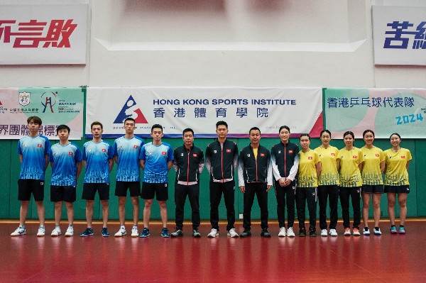 港隊周四在體院舉行記者會,除「一姐」杜凱琹因病缺席,其他隊員及教練團均有亮相。男隊由香港「一哥」黃鎮廷領銜,與何鈞傑、林兆恒、陳顥樺及姚鈞濤參賽;女隊則有杜凱琹、李皓晴、朱成竹、林依諾及吳詠琳角逐。