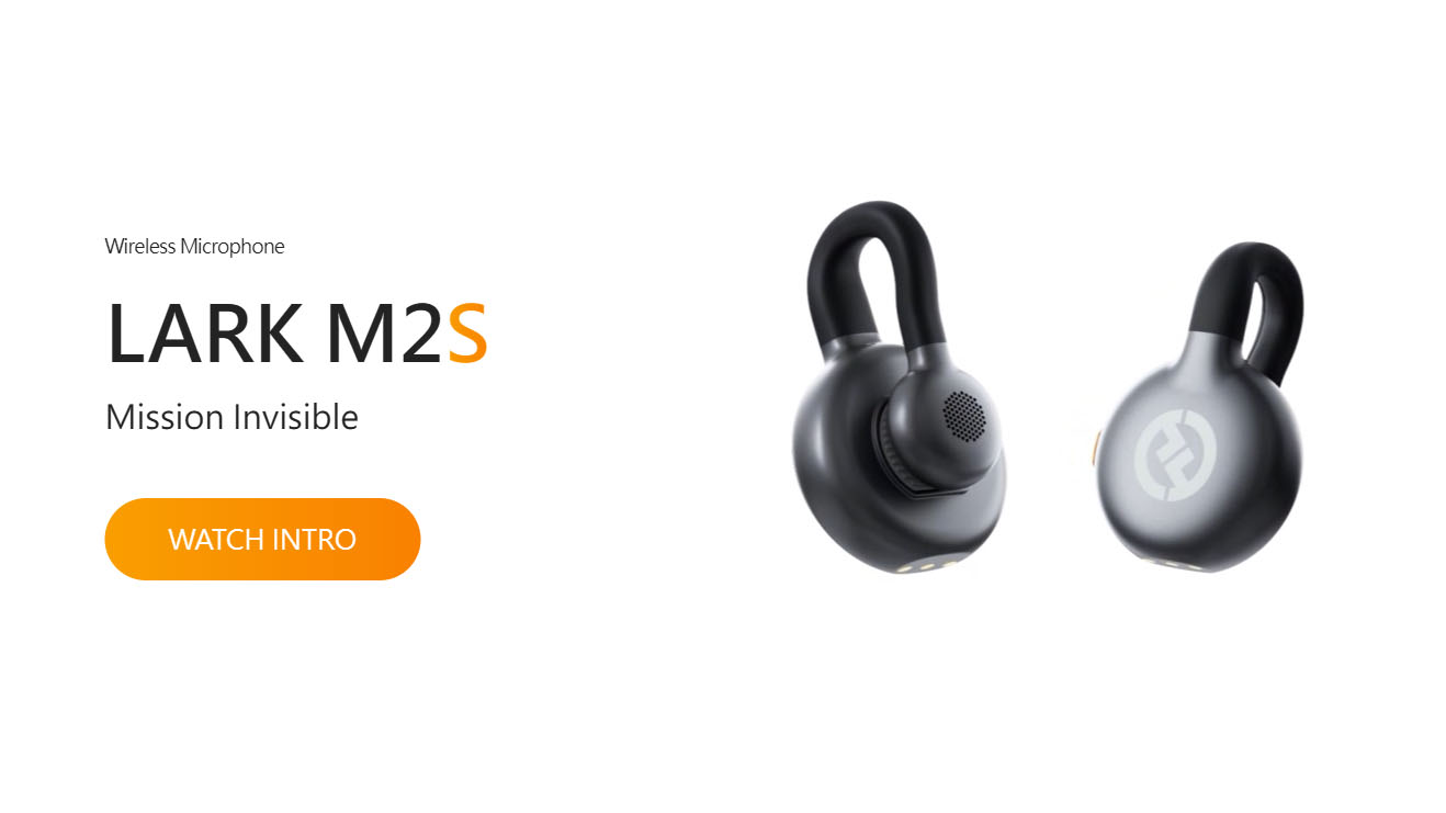 Lark M2S套裝包括兩個收音咪發射器和一個無線接收器,每個咪僅重7g,採用無Logo設計,使用時不用再免費為品牌賣廣告。收音咪似一個夾,其實真的是一個金屬夾,能夠穩固地夾在衣物上。配戴時較大的端在衣物背面,前面細小的圓形部份就是收音咪部分,只有1.3 cm × 0.63 cm,所以隱蔽性極強。有網上評測指,電池和訊號發射零件就在較大的部分,部局上與收音組件分開,造成如此小巧,設計實在一絕。