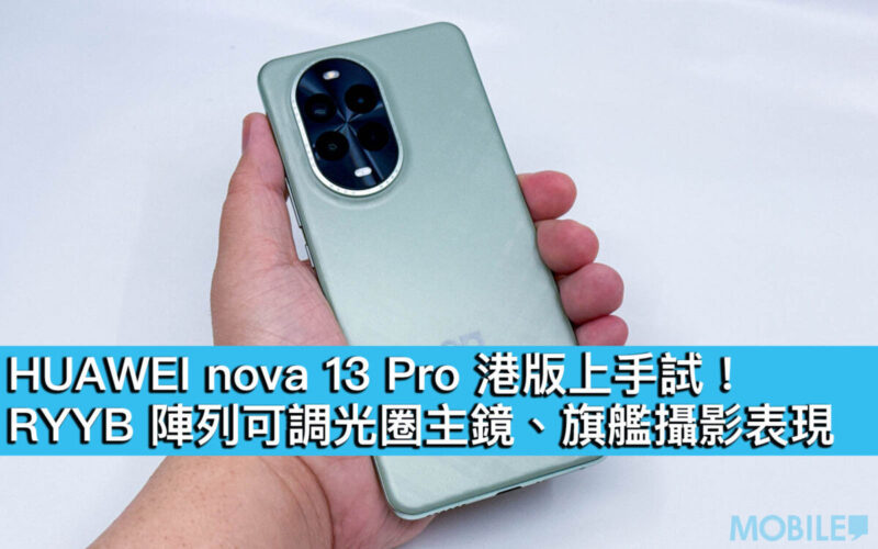 【MOBILE】想享有頂級靚芒及旗艦攝力手機,不一定要入手萬元級裝置,像早前 HUAWEI 在港發表的 nova 13 Pro,以 $4,299 港元 4 千 3 有找價格,就提供 RYYB 陣列 50MP OIS+AIS 混合防震超光變鏡頭,跟 6.76 吋 FHD+ 解像 10.7 億色 OLED 螢幕。