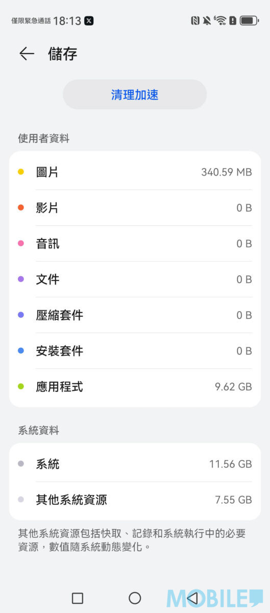 ▲ 採用 EMUI 14.2 系統,512GB 機型約佔用 19.11GB 空間