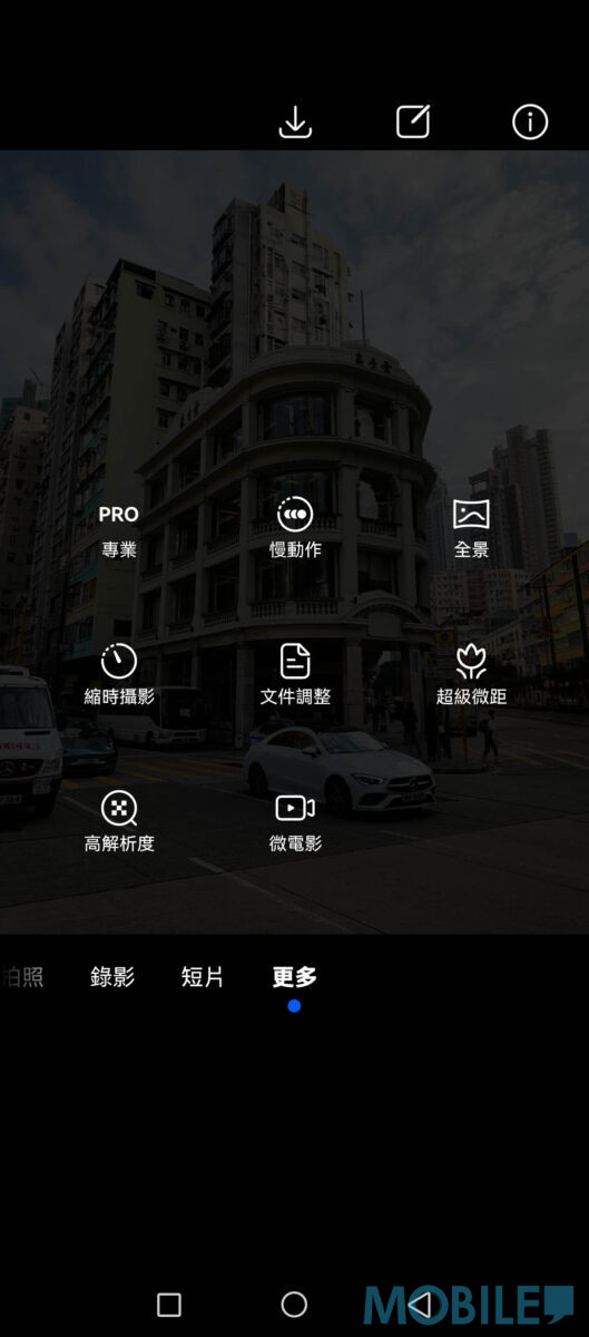 ▲ 專業、微距跟高解析度拍攝置於「更多」分頁中