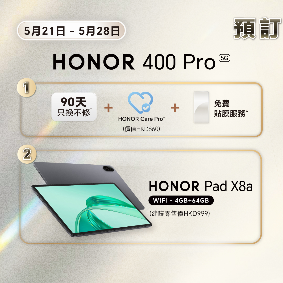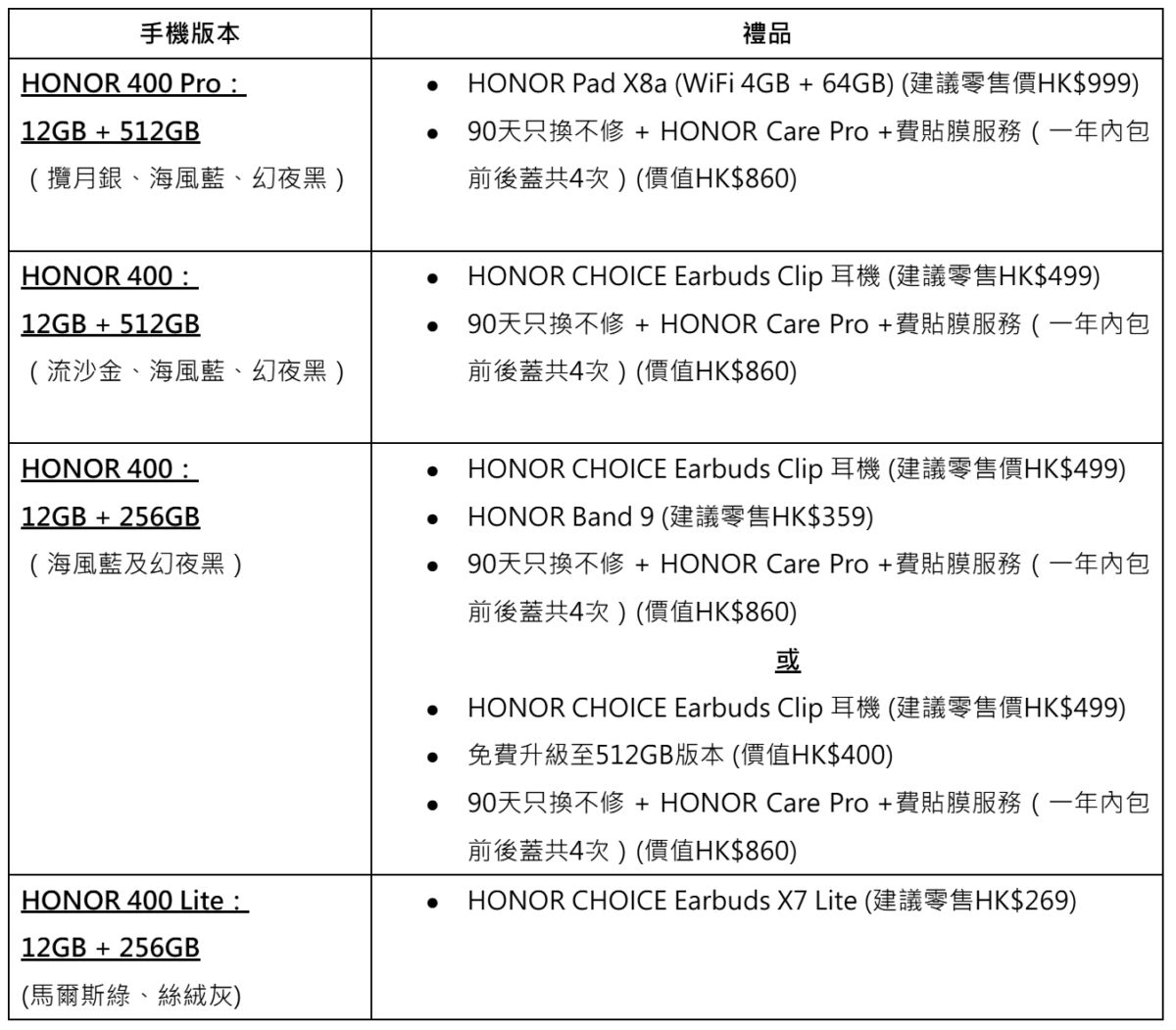 由即日起至5月28日,HONOR 400系列及HONOR 400 Lite預售禮遇詳情如下: