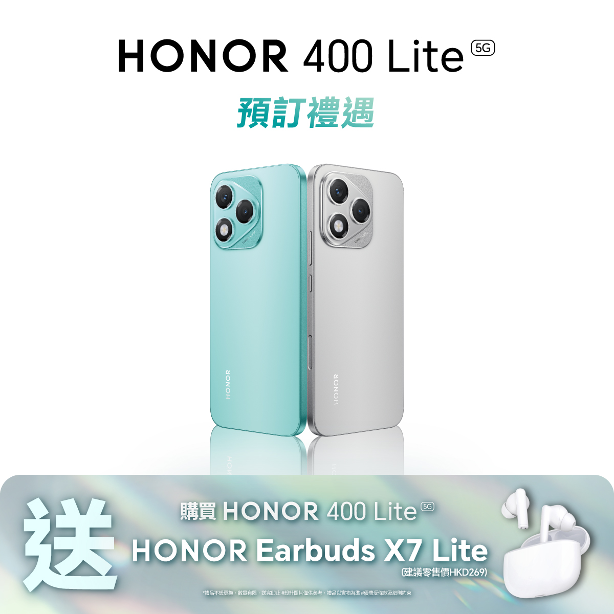 HONOR 400 Lite 設有 12GB + 256GB版本,具備馬爾斯綠和絲絨灰兩種配色,建議零售價為$1,999。