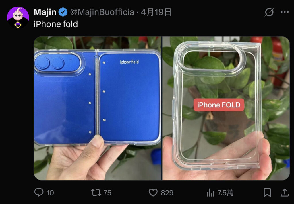 爆料達人 @MajinBuoffcia 早前在 X 帳號,展示副廠為 iPhone Fold(暫稱)設計的手機保護殻照片,當中可看到橫向排列主鏡頭組,跟為 MagSafe 預留磁吸圈位。