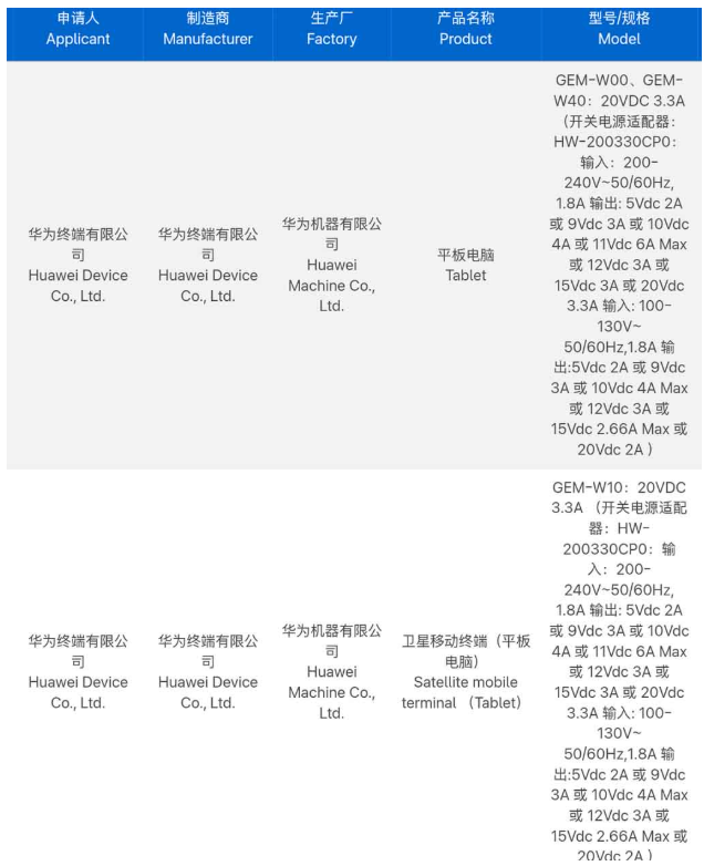 【MOBILE】華為繼早前 Pura 90 系列發表會上展示了智能手機、手錶及筆電等多款新品後,市場關注度極高的旗艦級平板電腦似乎也準備就緒。據最新的 3C 認證資料庫顯示,一款代號為「GEM」的新裝置已正式通過認證,預計這款是 MatePad Pro 系列的成員,而且更首增衛星通訊功能。