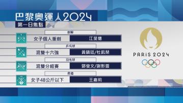 巴黎奧運首日港隊焦點 落在女子重劍頭號種籽江旻憓 巴黎奧運首日港隊焦點 落在女子重劍頭號種籽江旻憓 2024年7月27日 09:12 【Now新聞台】奧運第一日焦點,港隊落在女子重劍頭號種籽江旻憓身上。 重劍的江旻憓上屆八強止步,今次以世一身份再上劍道。 乒乓黃鎮廷、杜凱琹組合,同樣爭取衝破八強大關。