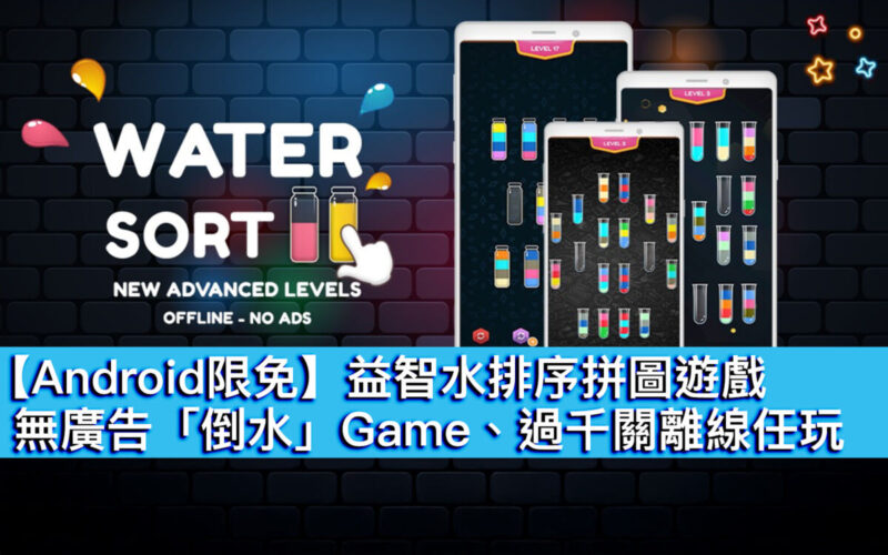 【Android限免】益智水排序拼圖遊戲!無廣告「倒水」Game、過千關離線任玩