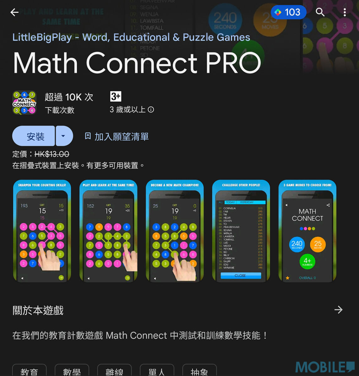 至於《Math Connect PRO》就擁有 3 種計數遊戲,並可上傳成績與全球玩家比高低。兩款遊戲均為完全版,無廣告無額外付費項目亦可離線遊玩。