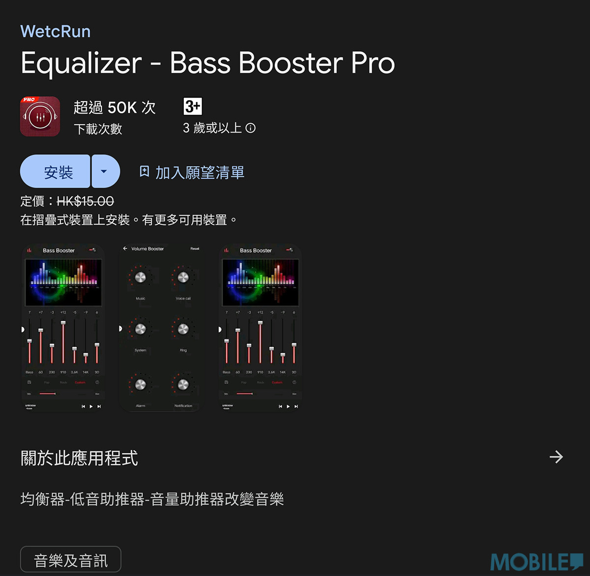 本文刊登時,由 WetcRun 製作的《Equalizer – Bass Booster Pro》,正於港區 Google Play Store 提供限時免費下載優惠(原價 HK$15)。