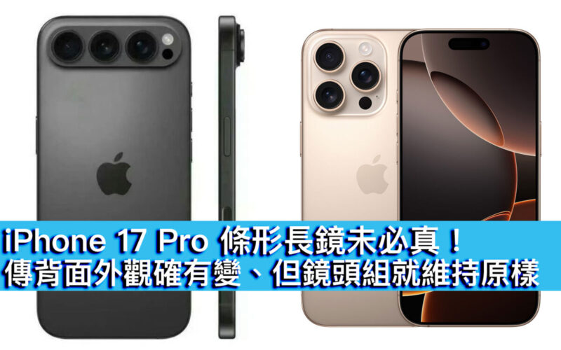 【MOBILE】近日關於 Apple 新代 iPhone 熱門消息,相信就是關於下代 iPhone 17 Pro 或將改用條形橫向三鏡佈置傳言。儘管日前已有外觀逼真的渲染圖流傳,但最新就有說法指該改動未必為真。