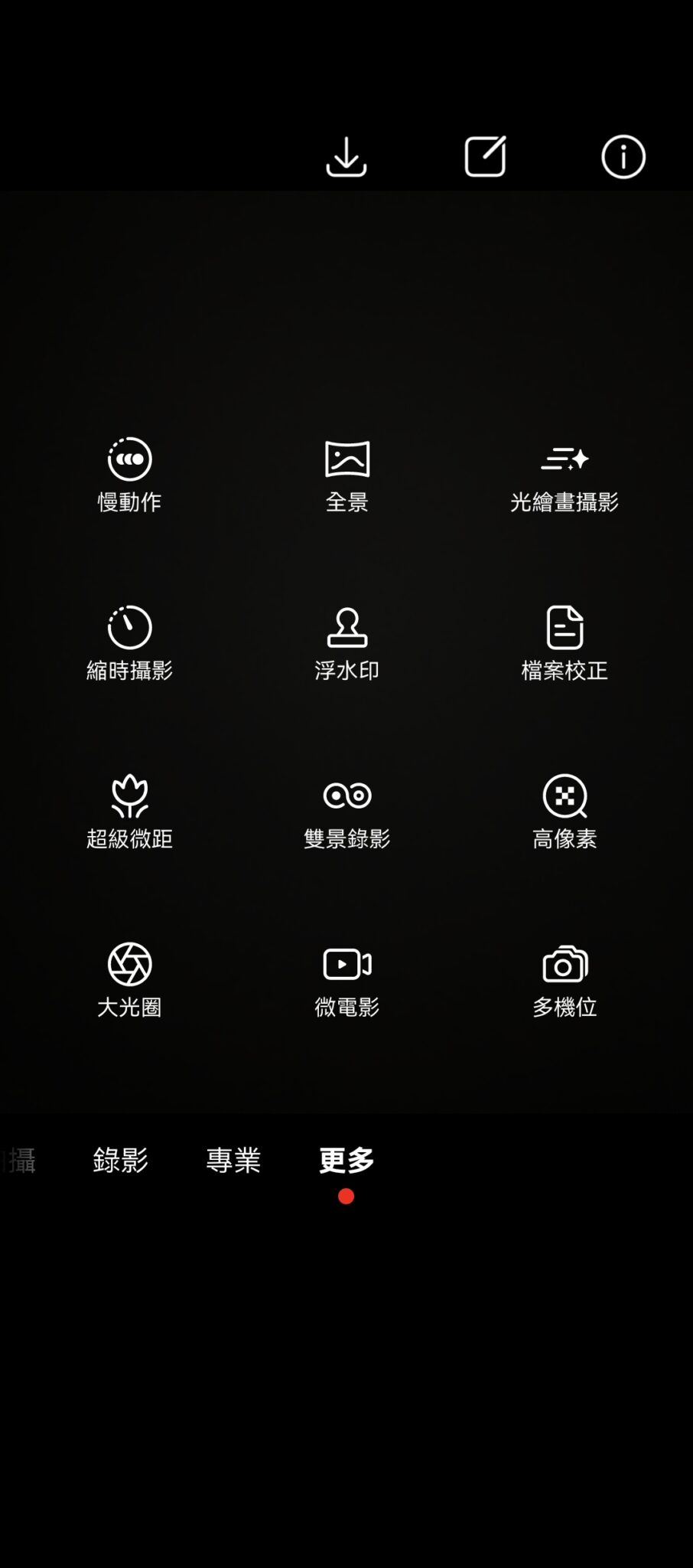 ▲ 大光圈跟超級微距等模式均置於「更多」分頁中