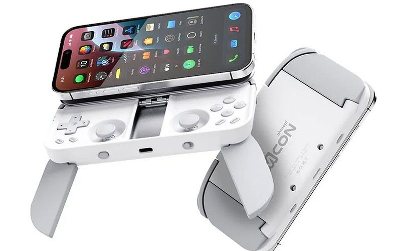 MCON 更具有像 Switch 一方的搖桿,配有防漂移霍爾效應感測器以及一對可摺疊的手柄,讓你可以像一般全尺寸遊戲手柄般拿着它,操縱桿是可點擊的按鍵,並且有齊整套肩鍵以及觸發器,變相就可以將 iPhone 搖身一變,變成一部遊戲機。