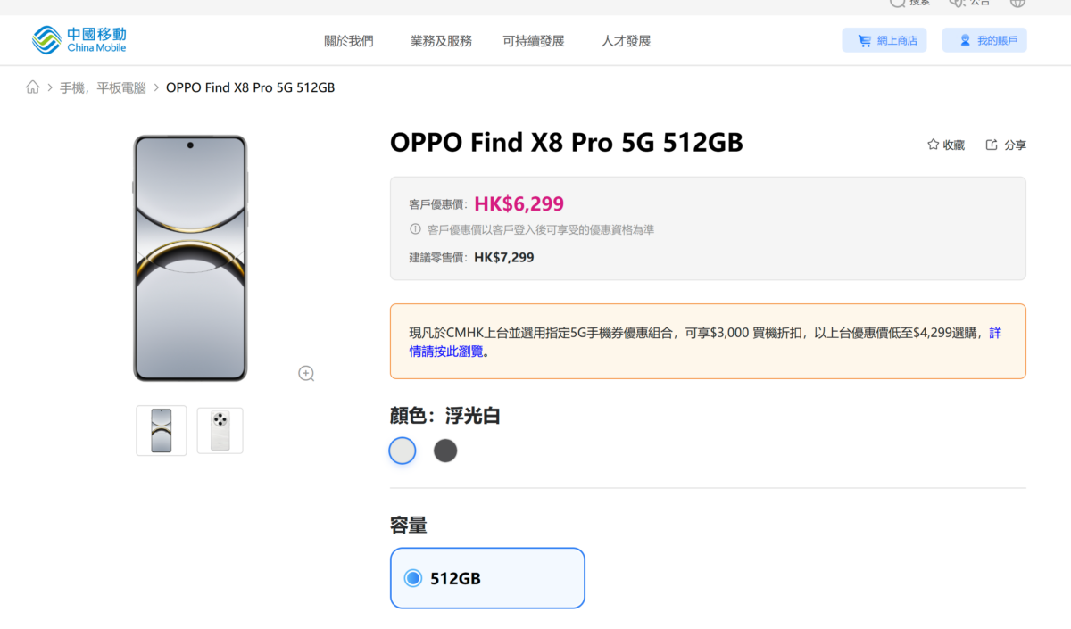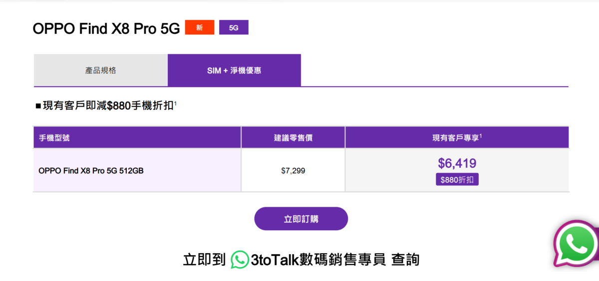 近日各大電訊商都為 OPPO Find X8 PRO推出客戶優惠,只是客戶就可以唔洗簽約都可以用$6,299的客戶優惠價入手港版 OPPO Find X8 PRO。這個客戶優惠價比國行5,999人民幣(折合6,425港元)還要平,還比同級的 vivo X200 Pro 港行客戶優惠價平近一千。
