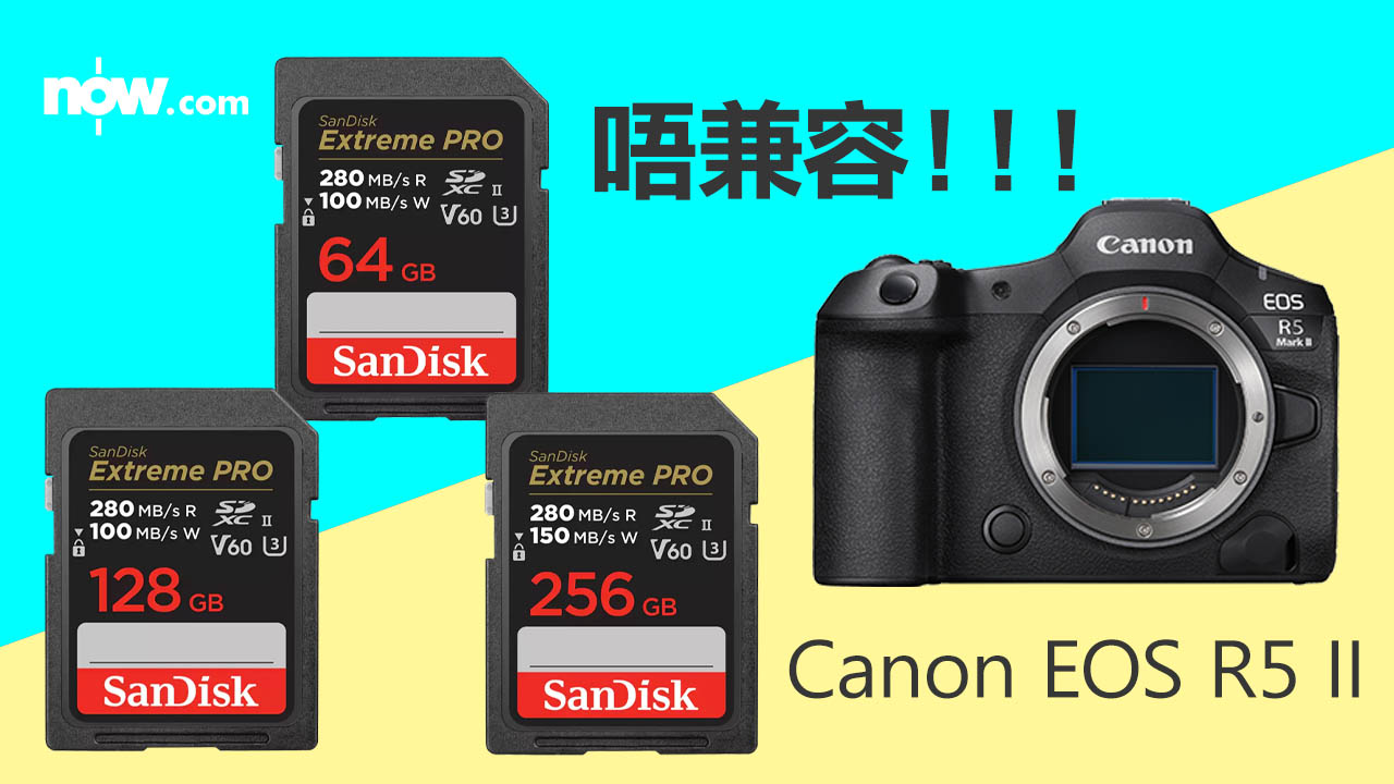 【Now.com】快啲check下!記憶卡品牌Sandisk某幾款SD卡同Canon最新專業相機EOS R5 II出現兼容問題,可能導致拍攝硬照檔案記錄損毀或無法讀取情況。