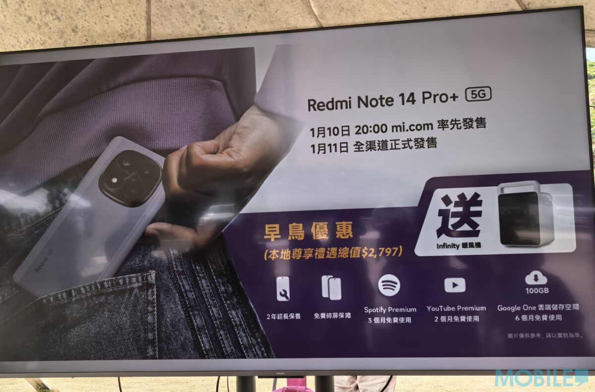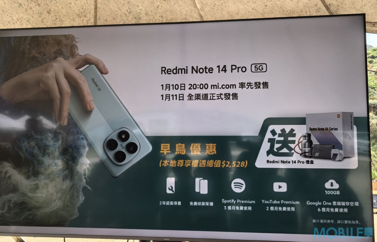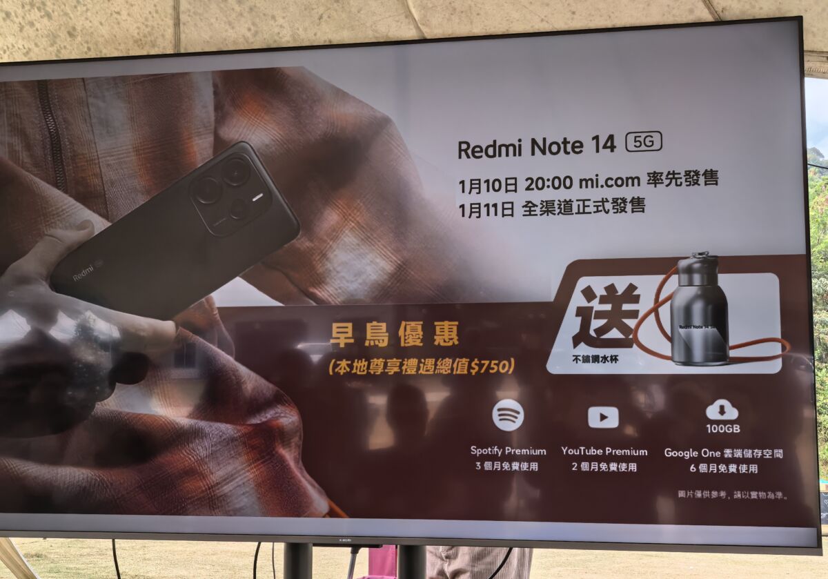 而 Redmi Note 14 5G 採用6.67吋120Hz AMOLED 屏幕(2400 x 1080),配備MediaTek Dimensity 7025-Ultra 處理器,內建 12GB RAM + 512GB ROM,搭載1.08億像主鏡 + 800萬超廣角鏡 + 200萬像微距鏡及2000萬像自拍鏡頭,電池容量為5,110mAh(支援45W快充)。Redmi Note 14 5G 建議零售價為$1,999,並提供午夜黑、薰衣紫、珊瑚綠。