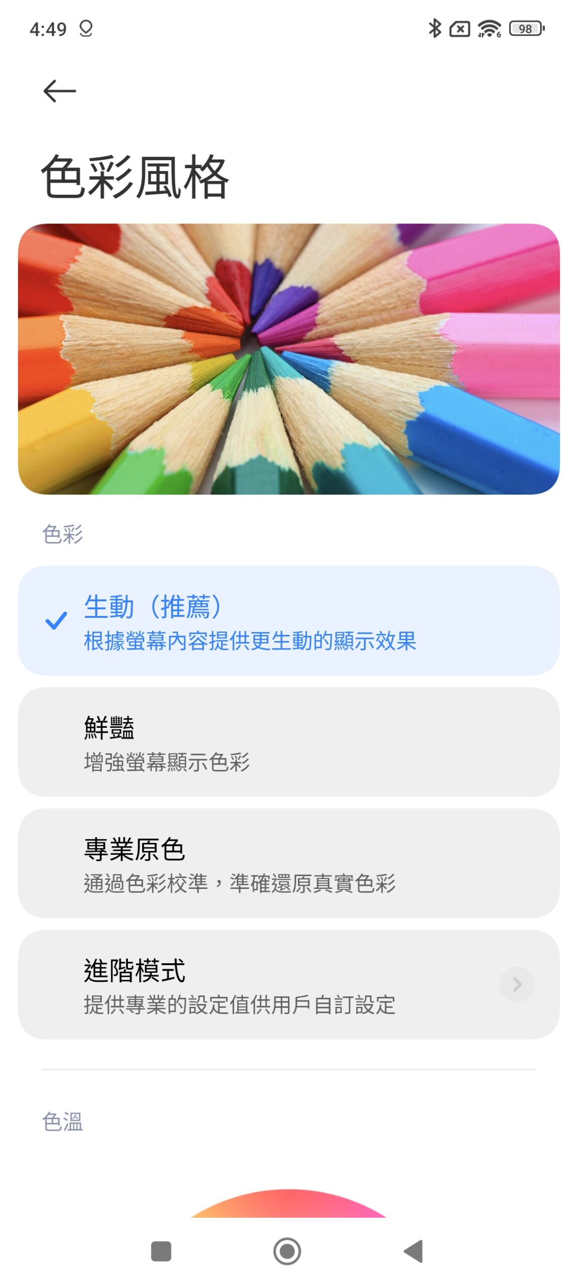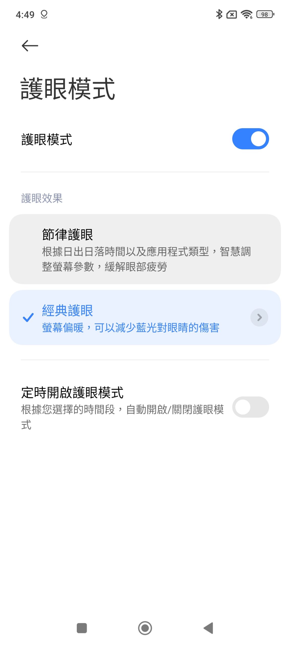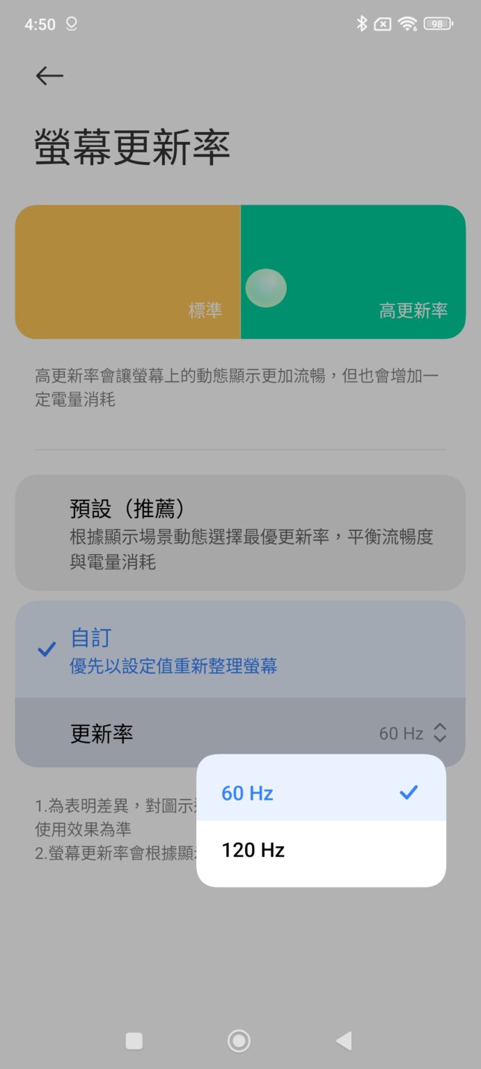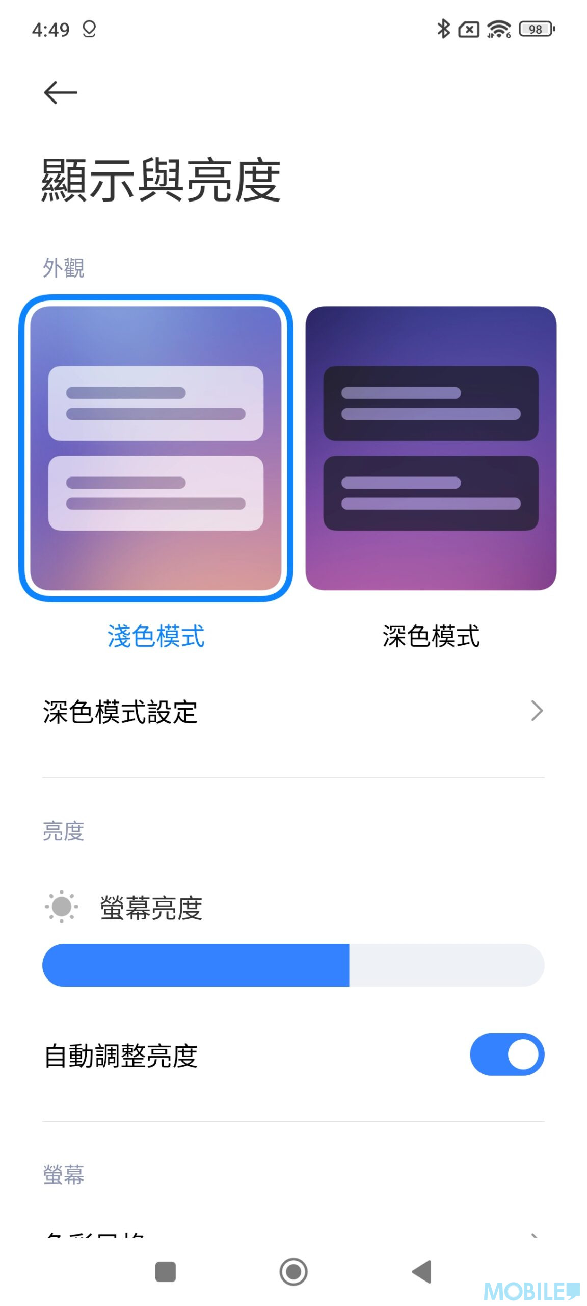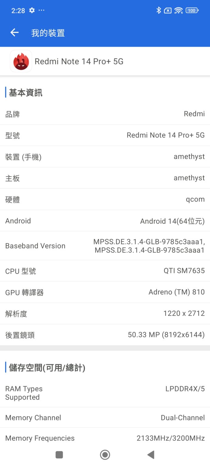 Redmi Note 14 Pro+ 5G 預載 Android 14,啟動後手機約佔用 31GB 空間,顯示選項部份具備原生深色模式、可排程定時啟動護眼模式。