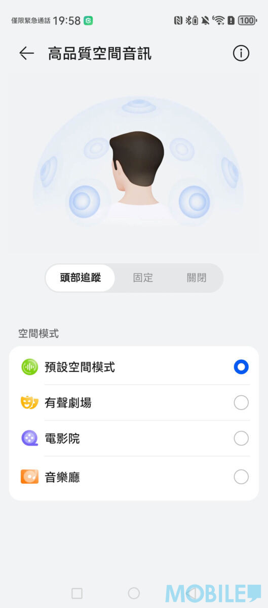 ▲ 支援全面高品質空間音訊設定,預設 4 種降噪方式