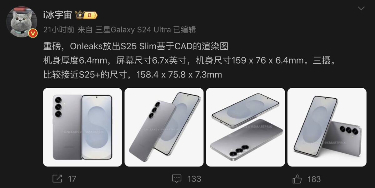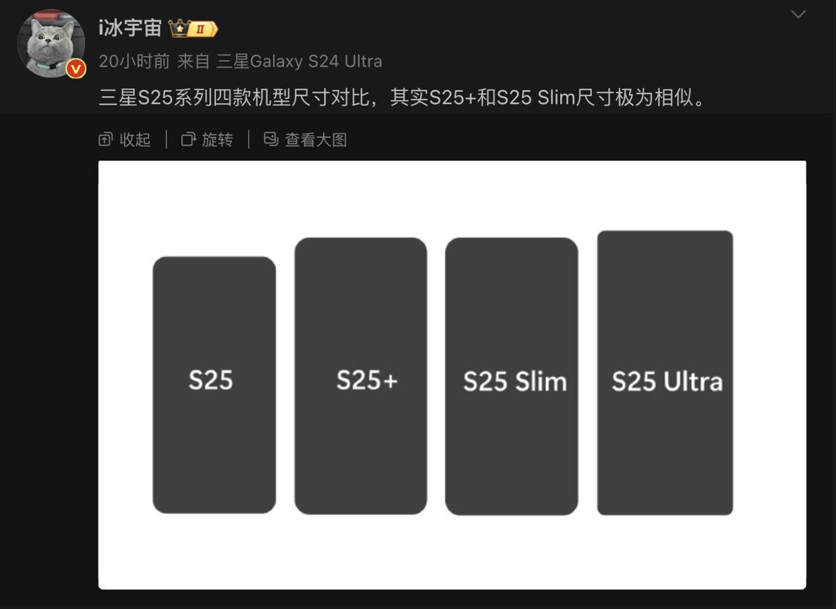 圖片可看到 S25 Slim 屏幕面積將較接近 S25+,據透露前者體積為 159 x 76x 6.4mm,跟 S25+ 傳聞 158.4 x 75.8 x 7.3mm 似乎頗為相近。