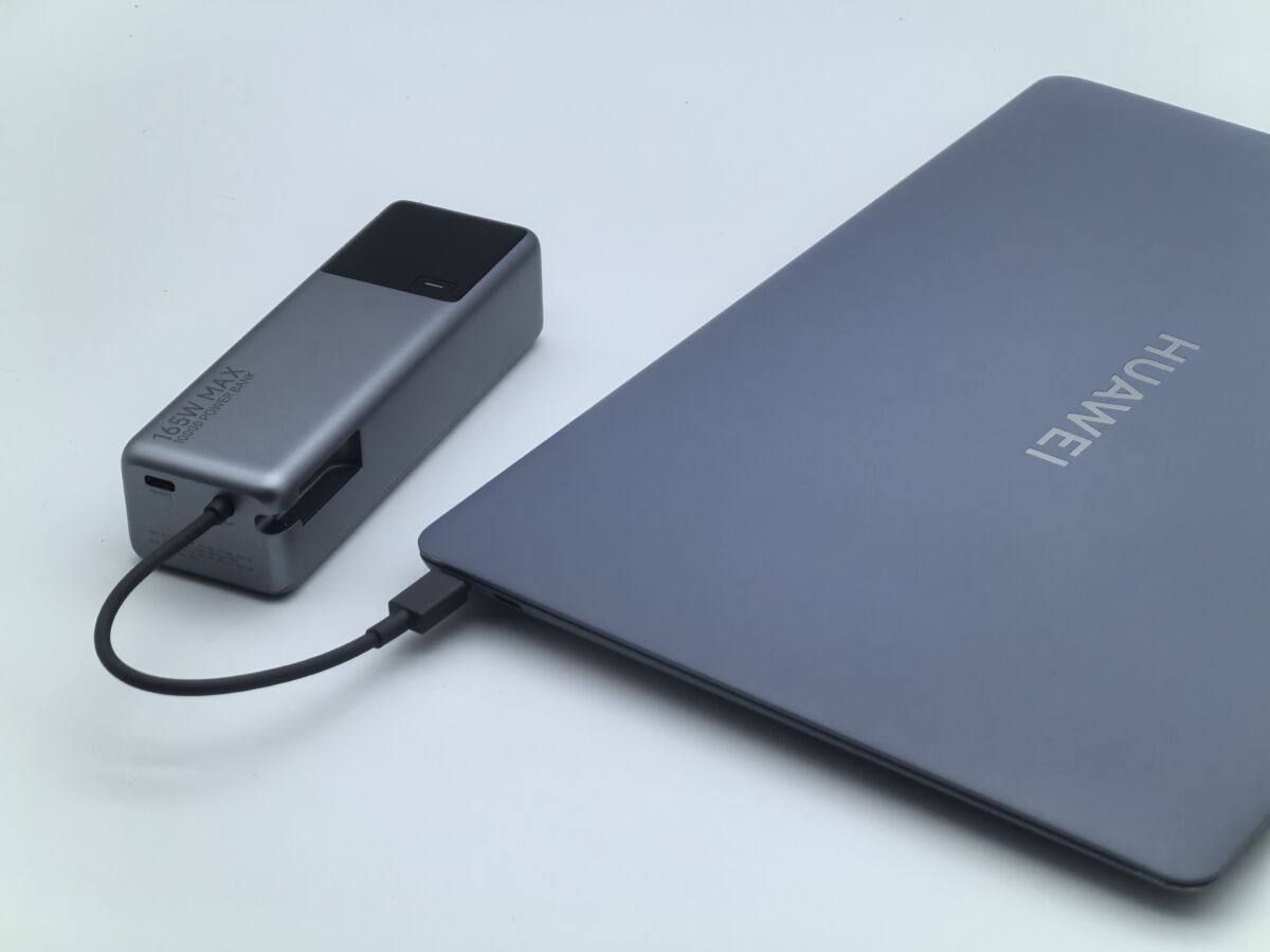 ▲而Xiaomi 自帶線行動電源 10000 165W 為 HUAWEI MateBook X Pro 2024 充電,可高達100W快充。