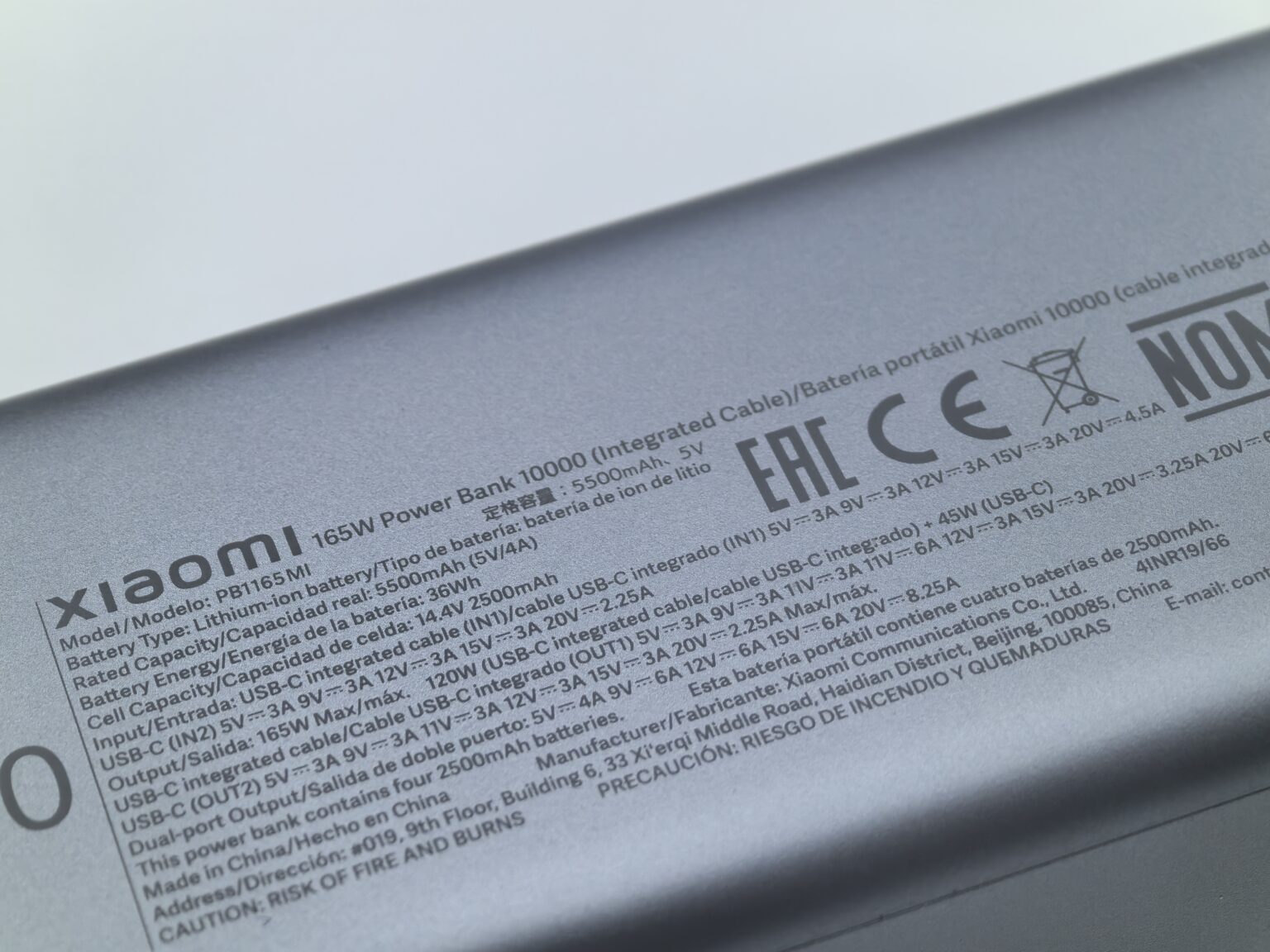 ▲Xiaomi 自帶線行動電源 10000 165W 為上代 Xiaomi 14 Ultra 可高達90W快充。
