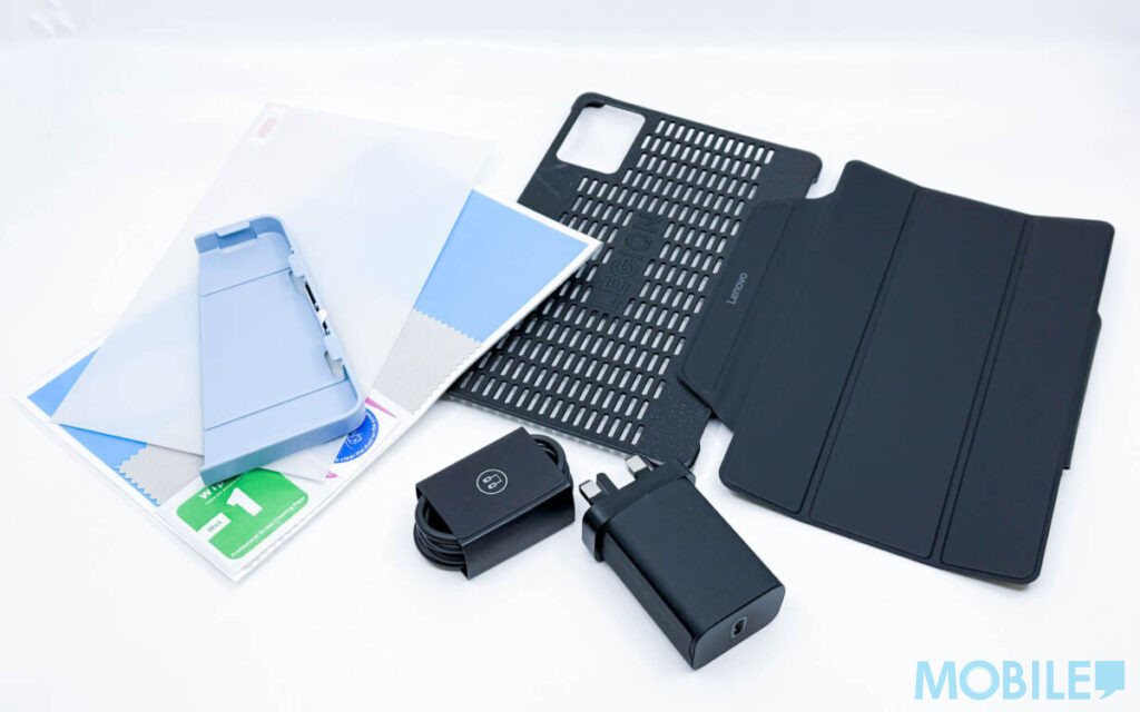 開箱港版 Legion Tab Gen 3,其包裝內容相當豐富,備齊玻璃貼跟貼屏工具、68W 閃充、專屬機套及數據線;開機後 8.8 吋 PureSight 螢幕又擁有不錯正面屏佔比。