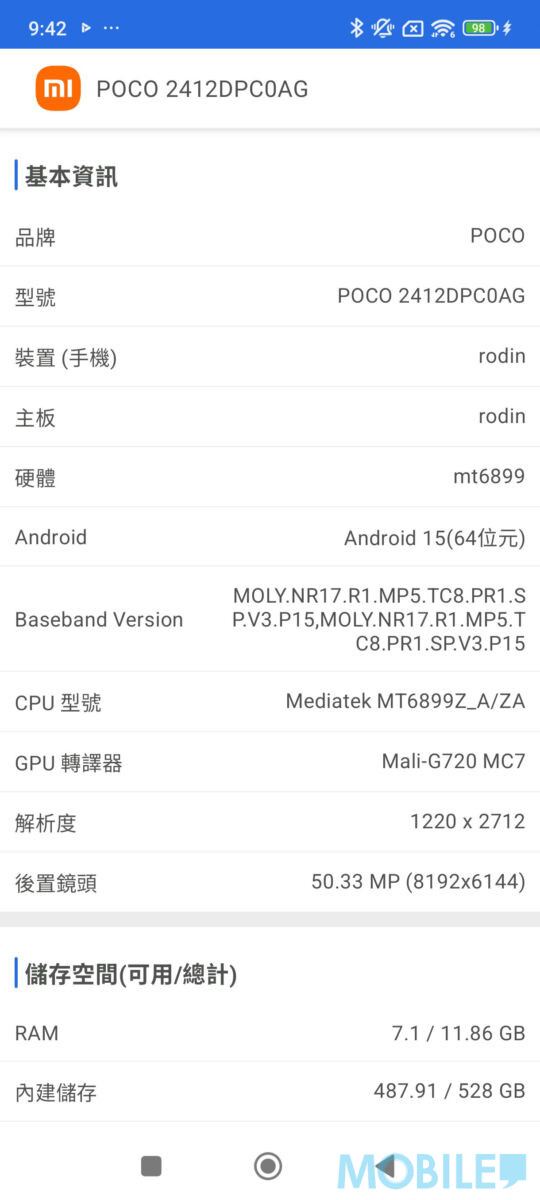 按鍵與 I/O 部份,POCO X7 Pro Iron Man 限定版採常見右側電源跟音量鍵佈置,兩面 Nano SIM 卡槽設在底端 Type C 埠旁,具 6,000mAh 電池及支援 90W 閃充。