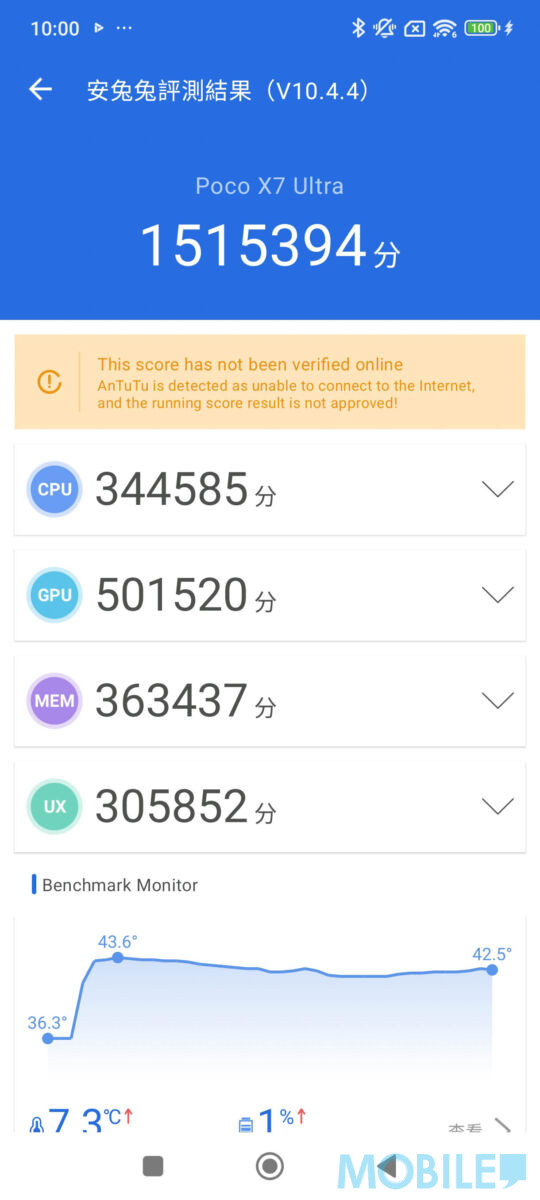 啟動手機後,可看到 X7 Pro Iron Man 限定版,預載了專屬主題壁紙及介面圖示。硬件部份手機採用天璣 8400-Ultra,在 Antutu V10 版輕鬆獲逾 151 萬高分。