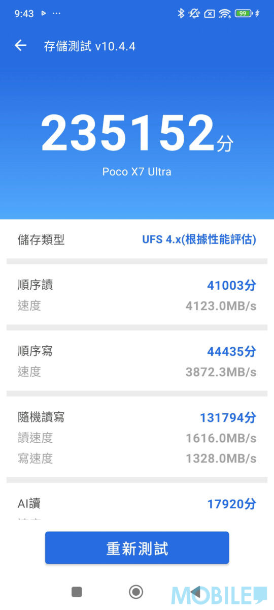 ▲ Antutu V10 版獲逾 151 萬不錯成績、儲存測試亦達 235,152 高分