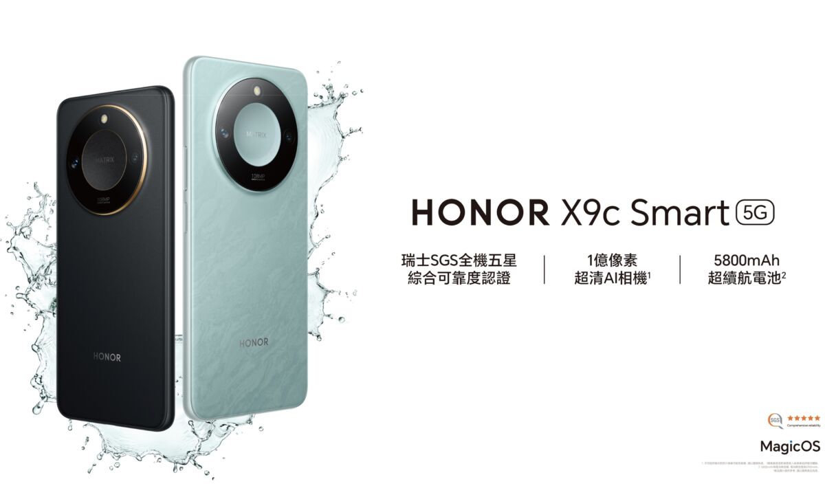 至於 HONOR X9c Smart 採用6.8吋屏幕(2412 x 1080),配備Dimensity 7025 Ultra 處理器,內建12GB RAM + 256GB ROM,搭載1.08 億像主鏡頭 (f/1.75 光圈) + 500 萬像廣角鏡頭 (f/2.2 光圈) 及1600萬像廣角自拍鏡頭,電池容量為5800mAh(支援 35W HONOR Super Charge)。