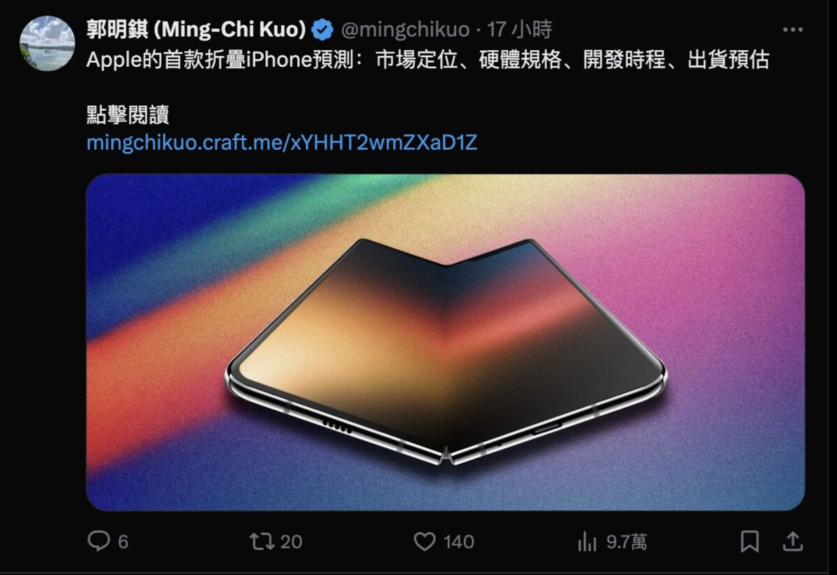 Foldable iPhone 將為 Apple 最強旗艦!郭明錤:超越現有體驗、一功能勢必回歸