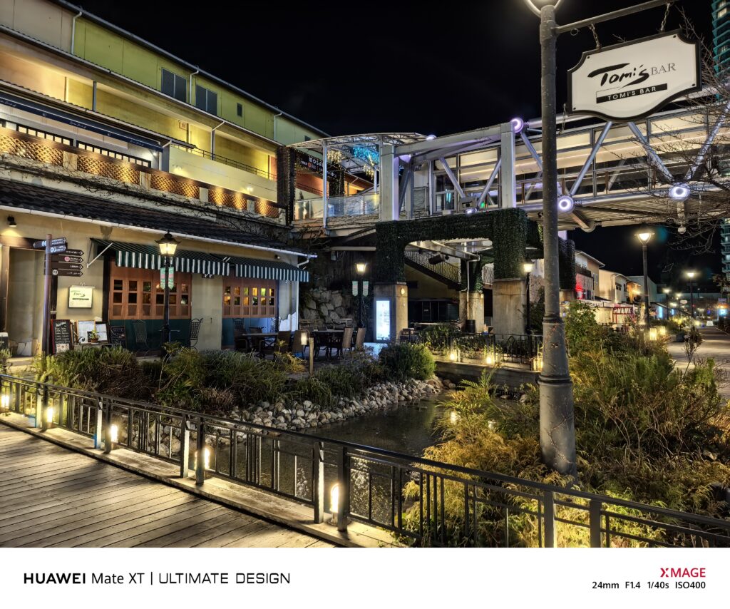 在夜景拍攝方面,HUAWEI Mate XT 的相機展現了強大的實力。主攝鏡頭結合大光圈與多幀合成算法,即使在極暗環境下也能保留豐富的暗部細節,同時抑制高光溢出的現象。